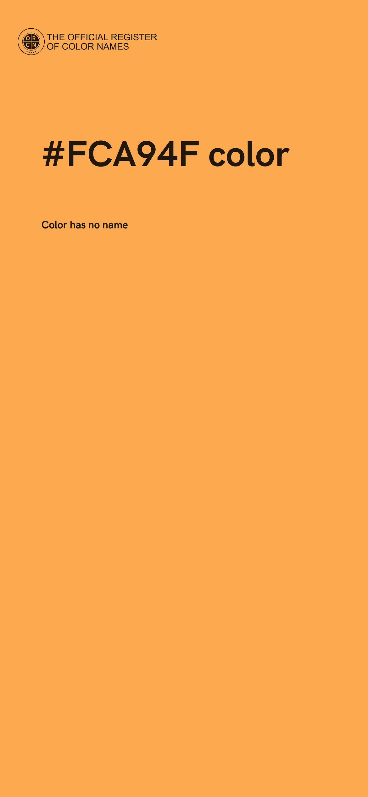 The digital color HEX #FCA94F belongs to the Orange Color Family featuring Full Saturation (Saturation Family) and Very Light (Brightness Family).