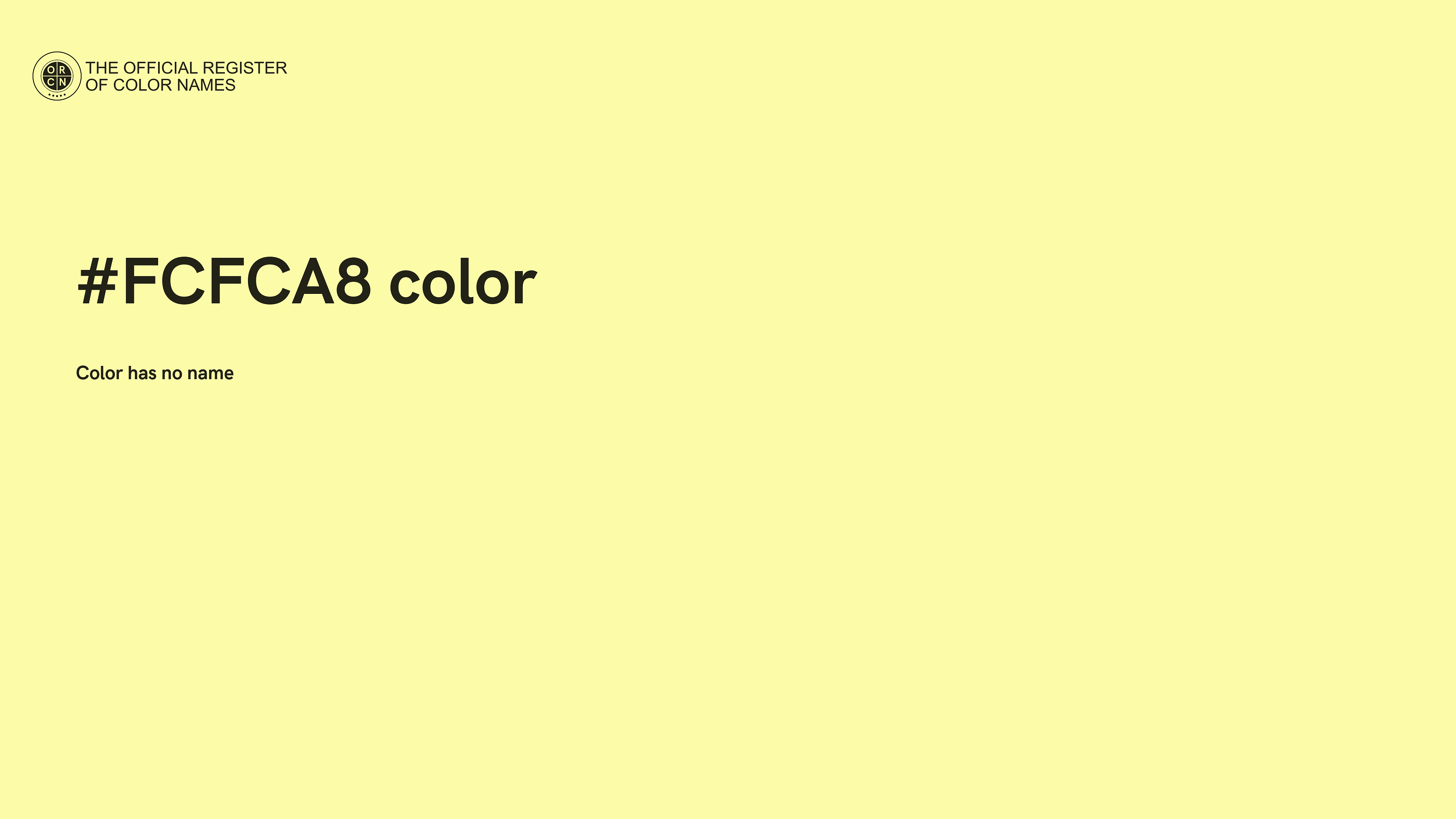 For printing in non digital world, #FCFCA8 is represented in CMYK as 0 Cyan, 0 Magenta, 33 Yellow, and 1 Black (Key) (C:0 M:0 Y:33 K:1).