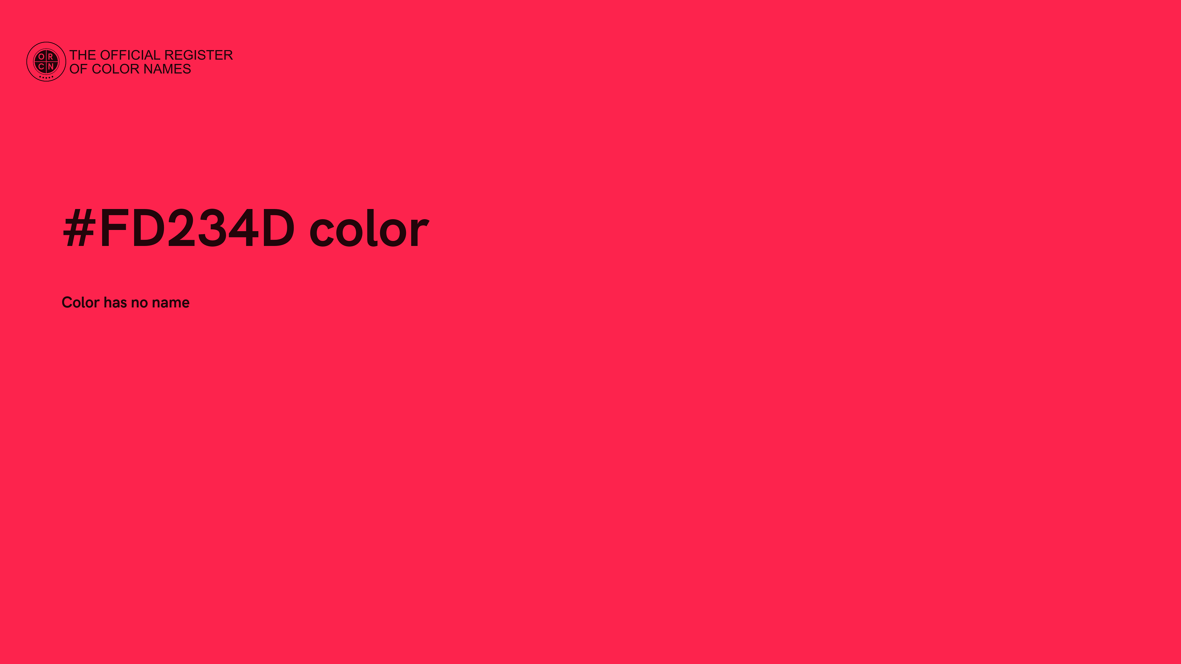 The digital color HEX #FD234D belongs to the Red Color Family featuring Full Saturation (Saturation Family) and Light (Brightness Family).