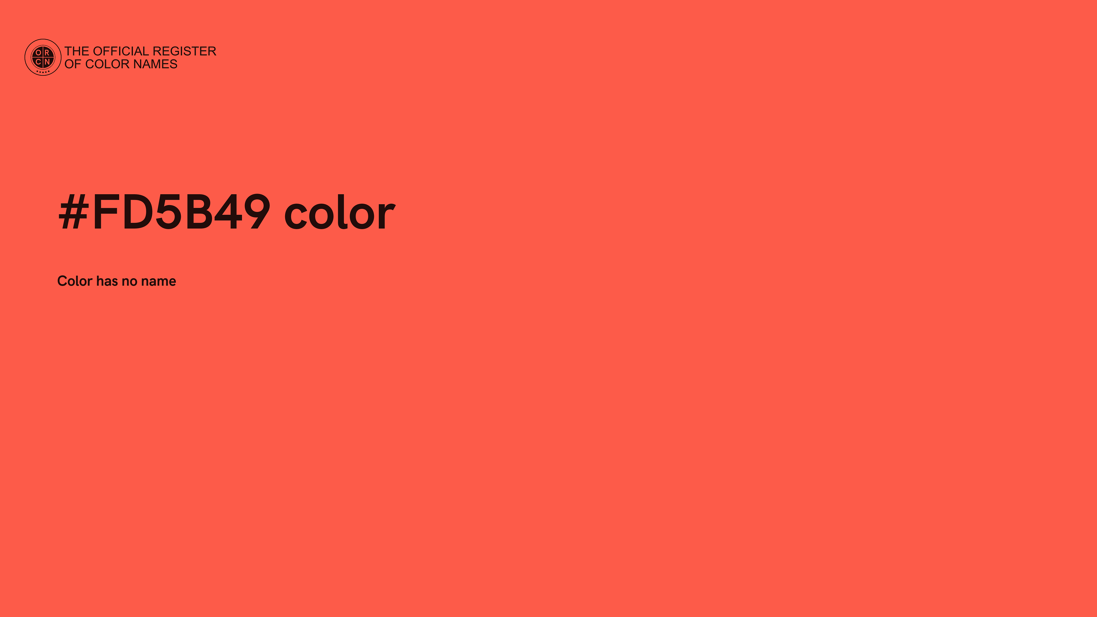 The digital color HEX #FD5B49 belongs to the Red Color Family featuring Full Saturation (Saturation Family) and Very Light (Brightness Family).