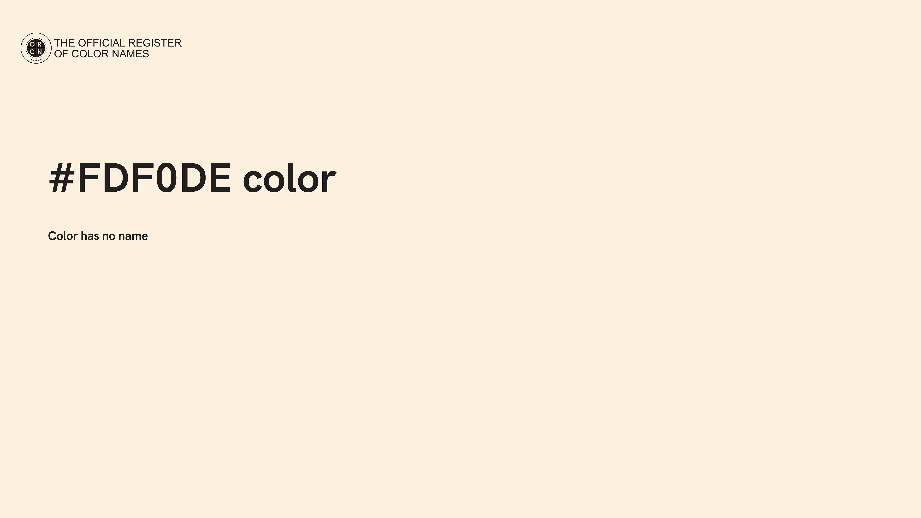 The digital color HEX #FDF0DE belongs to the Orange Color Family featuring Full Saturation (Saturation Family) and Luminous (Brightness Family).