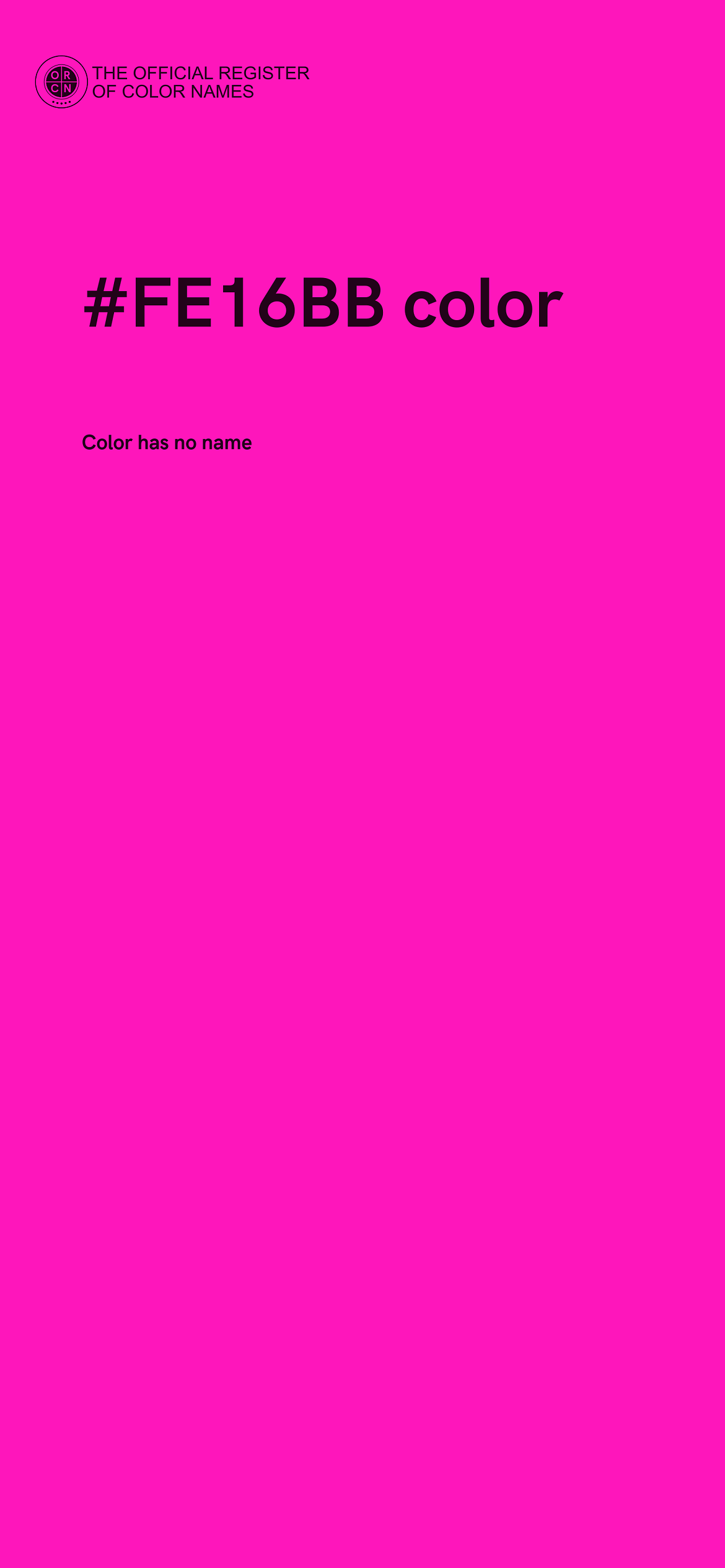 The digital color HEX #FE16BB belongs to the Rose Color Family featuring Full Saturation (Saturation Family) and Light (Brightness Family).