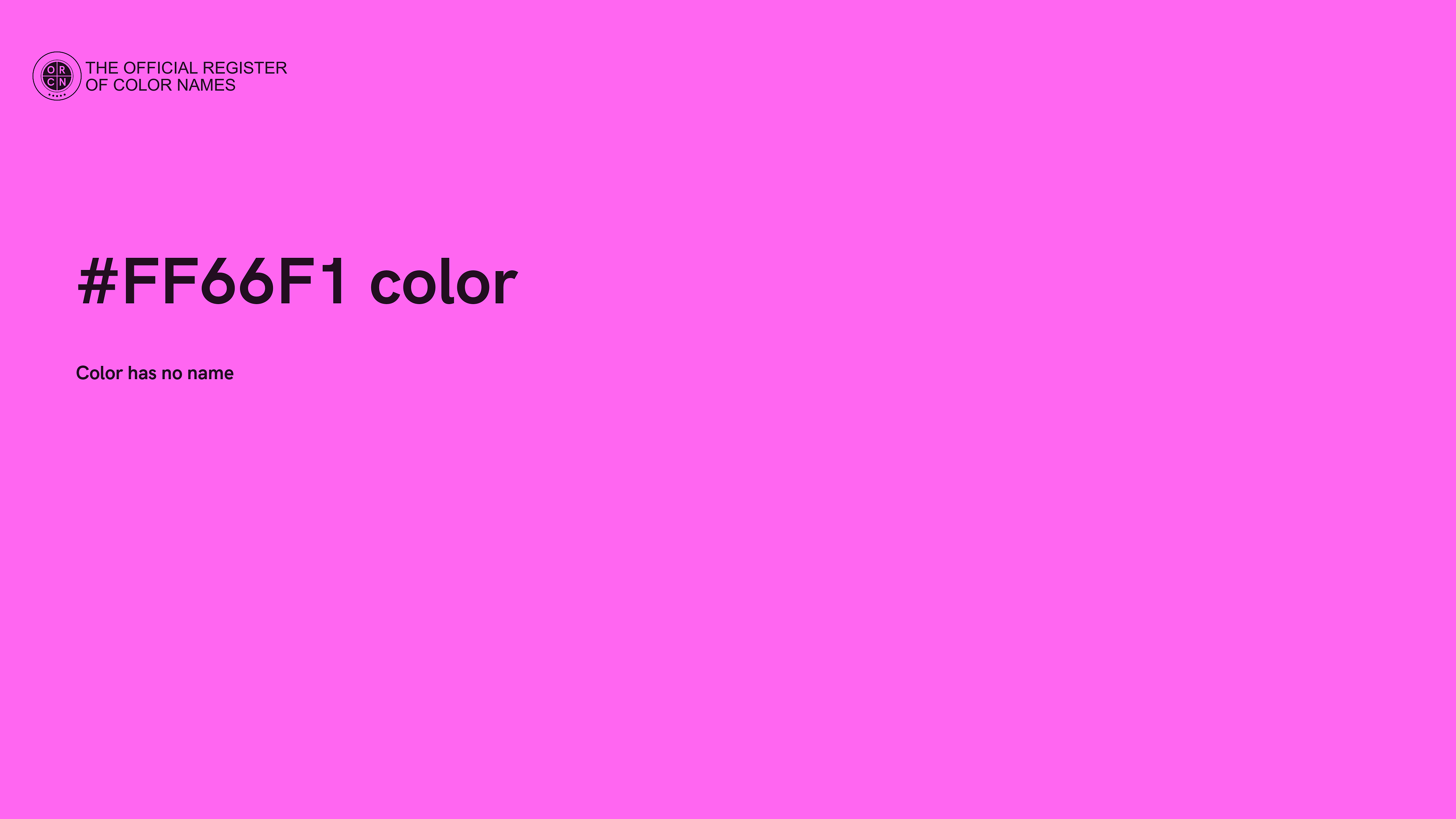 The digital color HEX #FF66F1 belongs to the Magenta Color Family featuring Full Saturation (Saturation Family) and Very Light (Brightness Family).