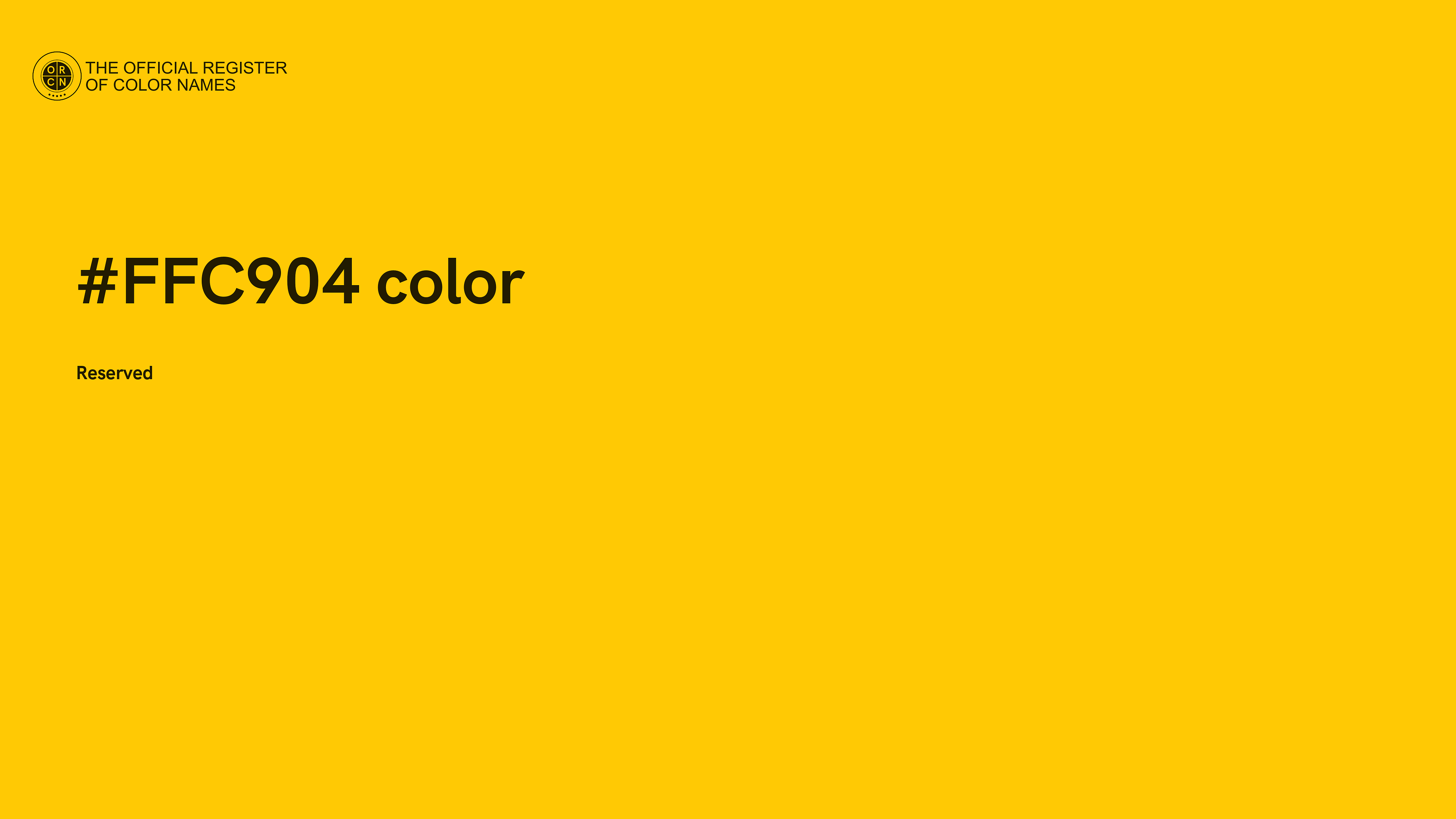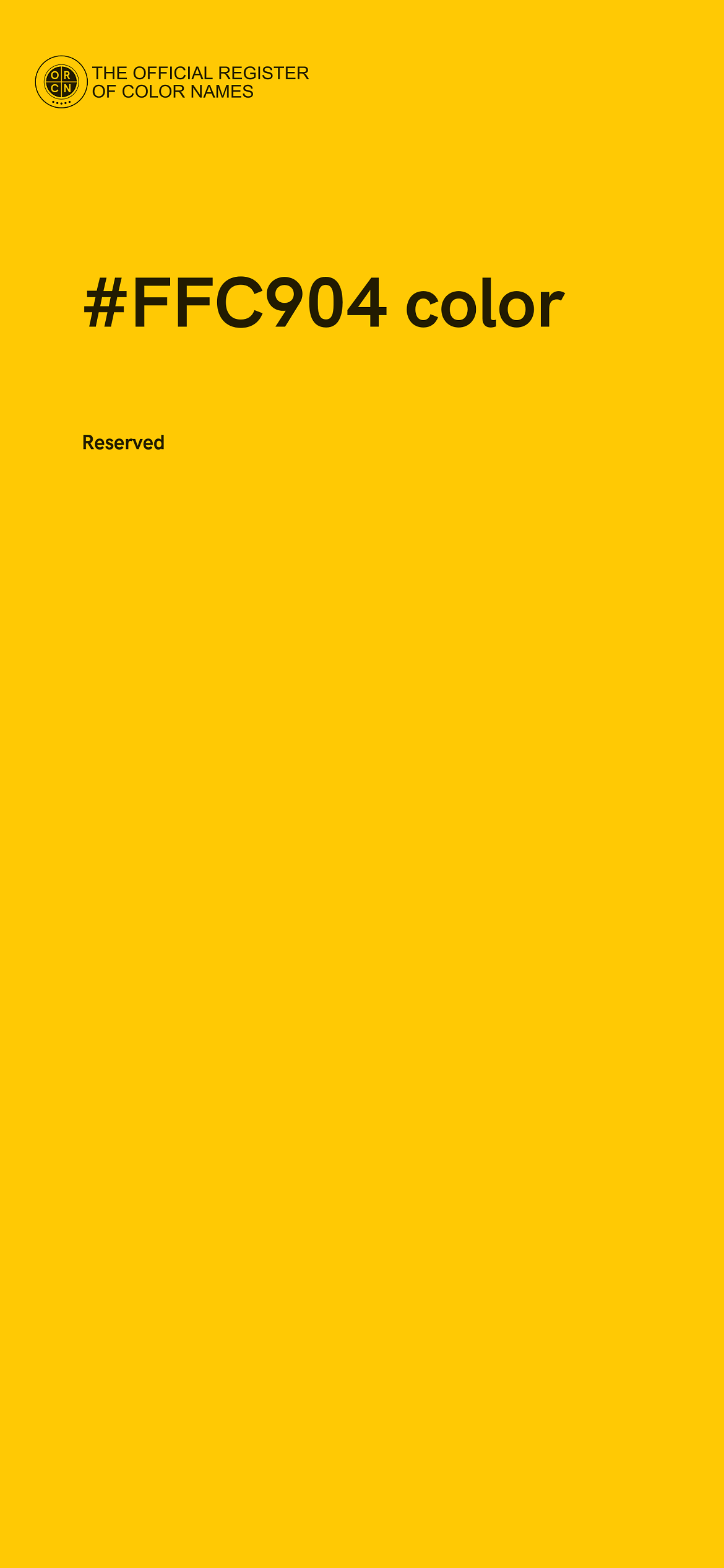 The digital color HEX #FFC904 belongs to the Yellow Color Family featuring Full Saturation (Saturation Family) and Light (Brightness Family).