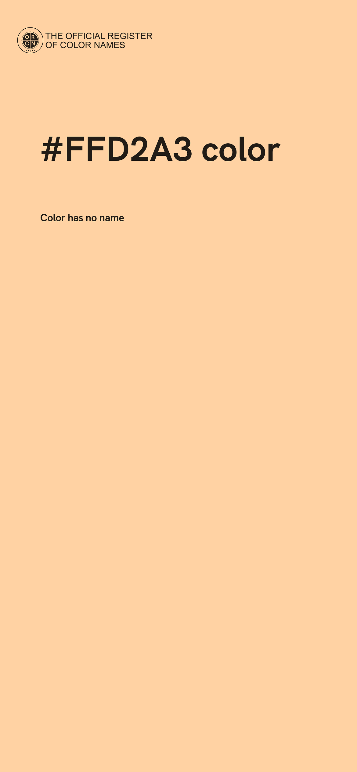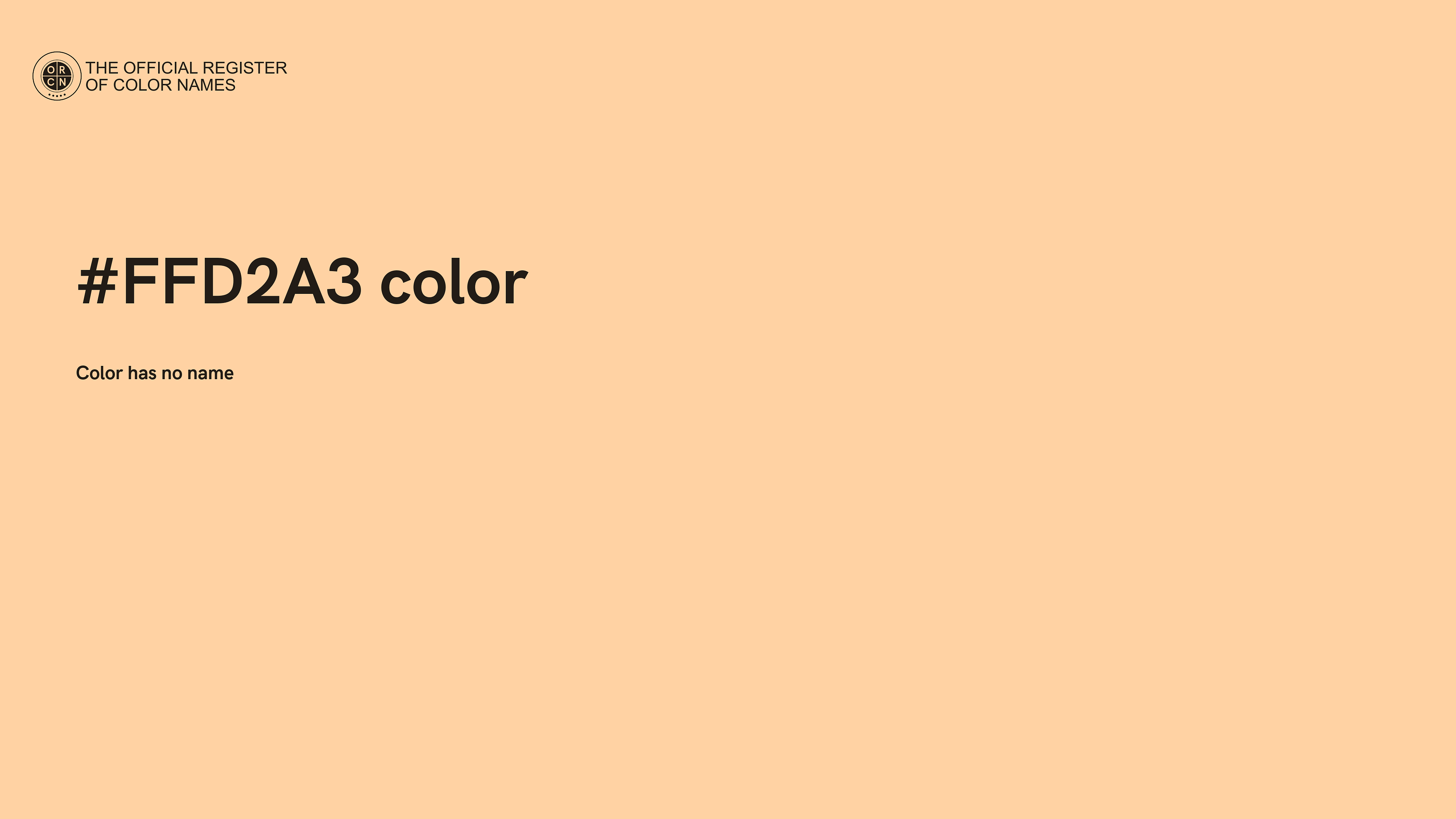 The digital color HEX #FFD2A3 belongs to the Orange Color Family featuring Full Saturation (Saturation Family) and Very Light (Brightness Family).