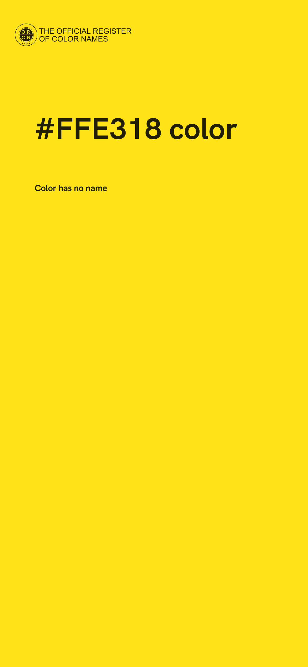 The digital color HEX #FFE318 belongs to the Yellow Color Family featuring Full Saturation (Saturation Family) and Light (Brightness Family).