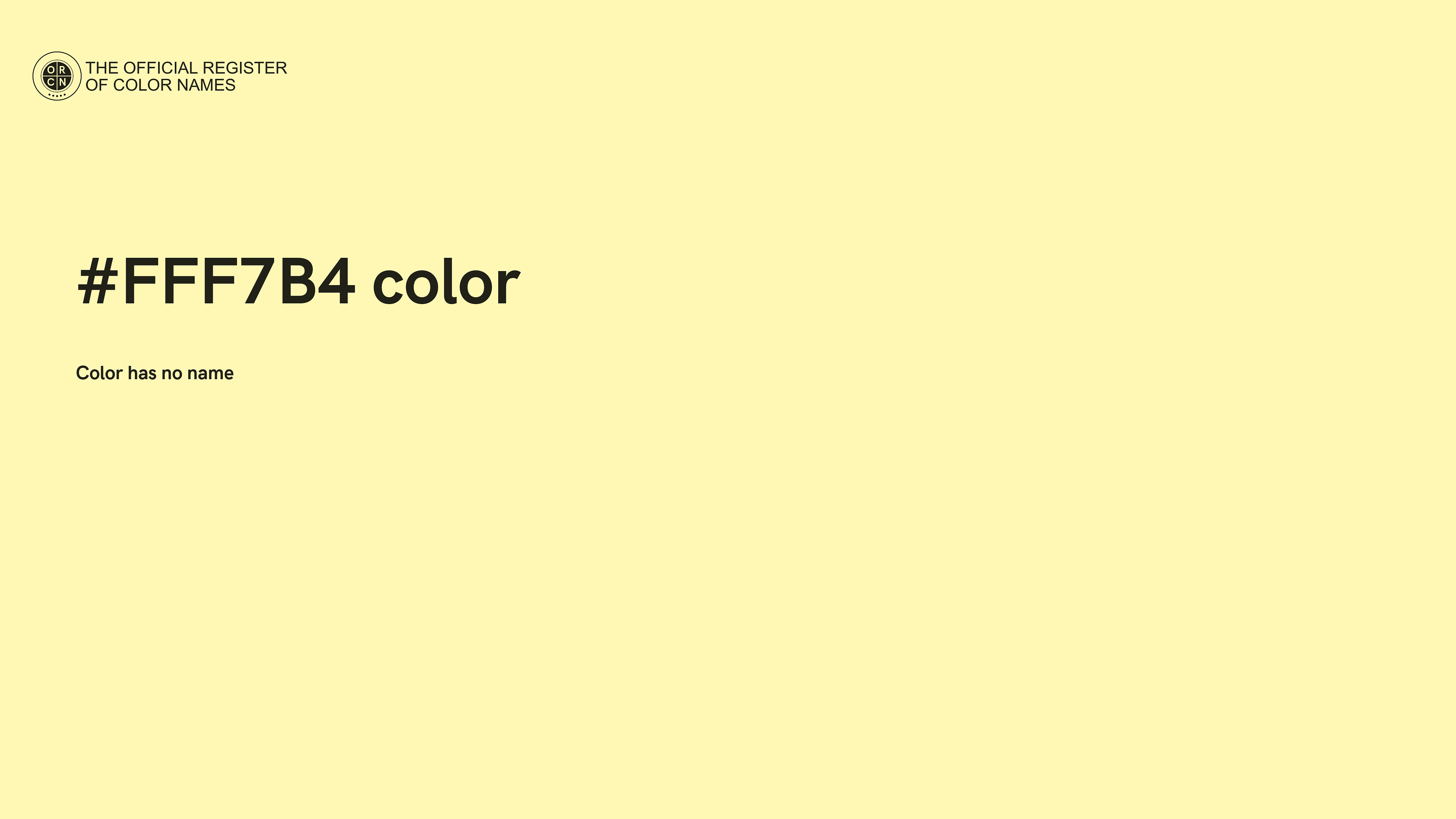 The digital color HEX #FFF7B4 belongs to the Yellow Color Family featuring Full Saturation (Saturation Family) and Luminous (Brightness Family).