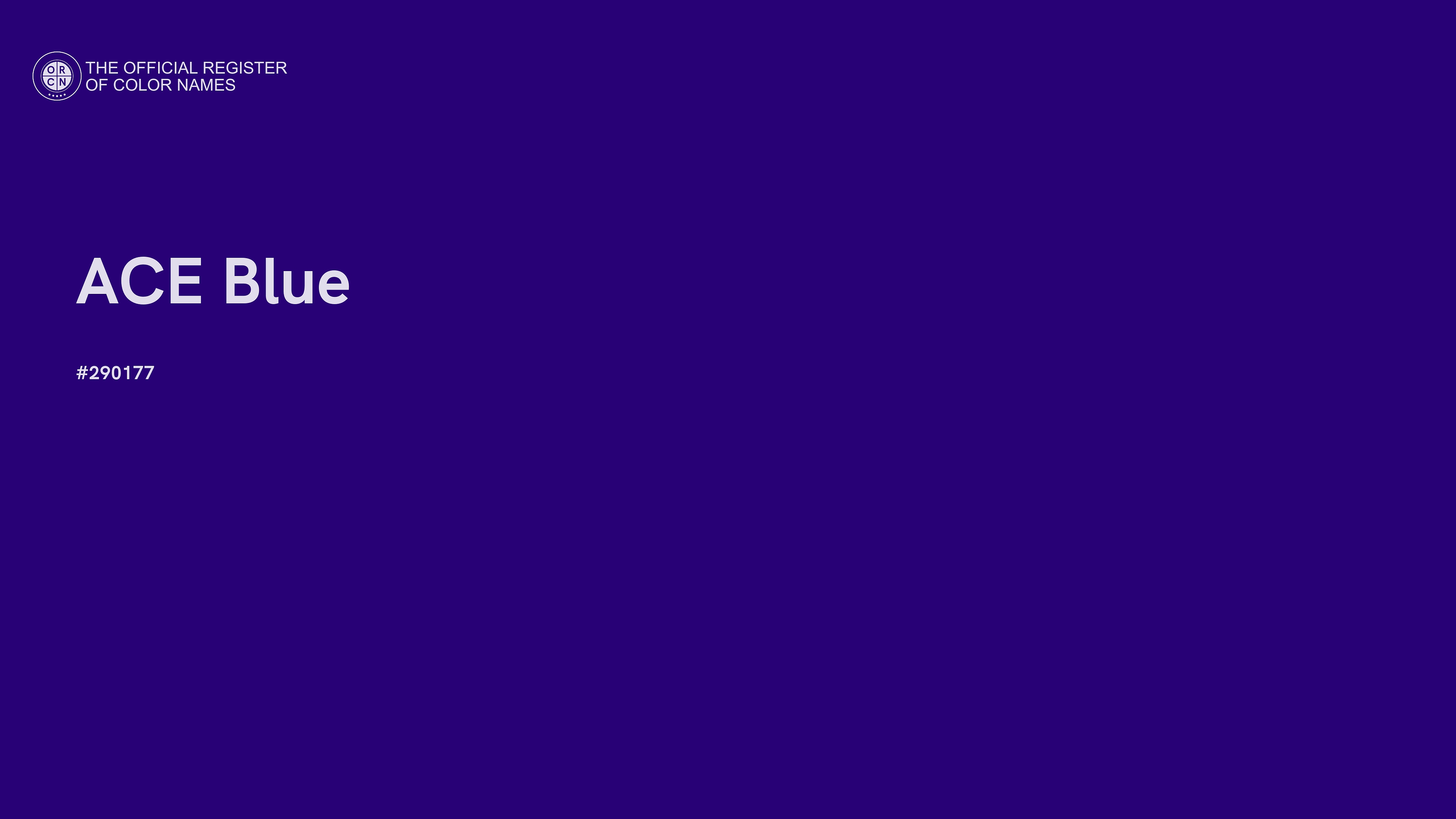 The digital color HEX #290177, known as "ACE Blue", belongs to the Violet Color Family featuring Full Saturation (Saturation Family) and Dark (Brightness Family).