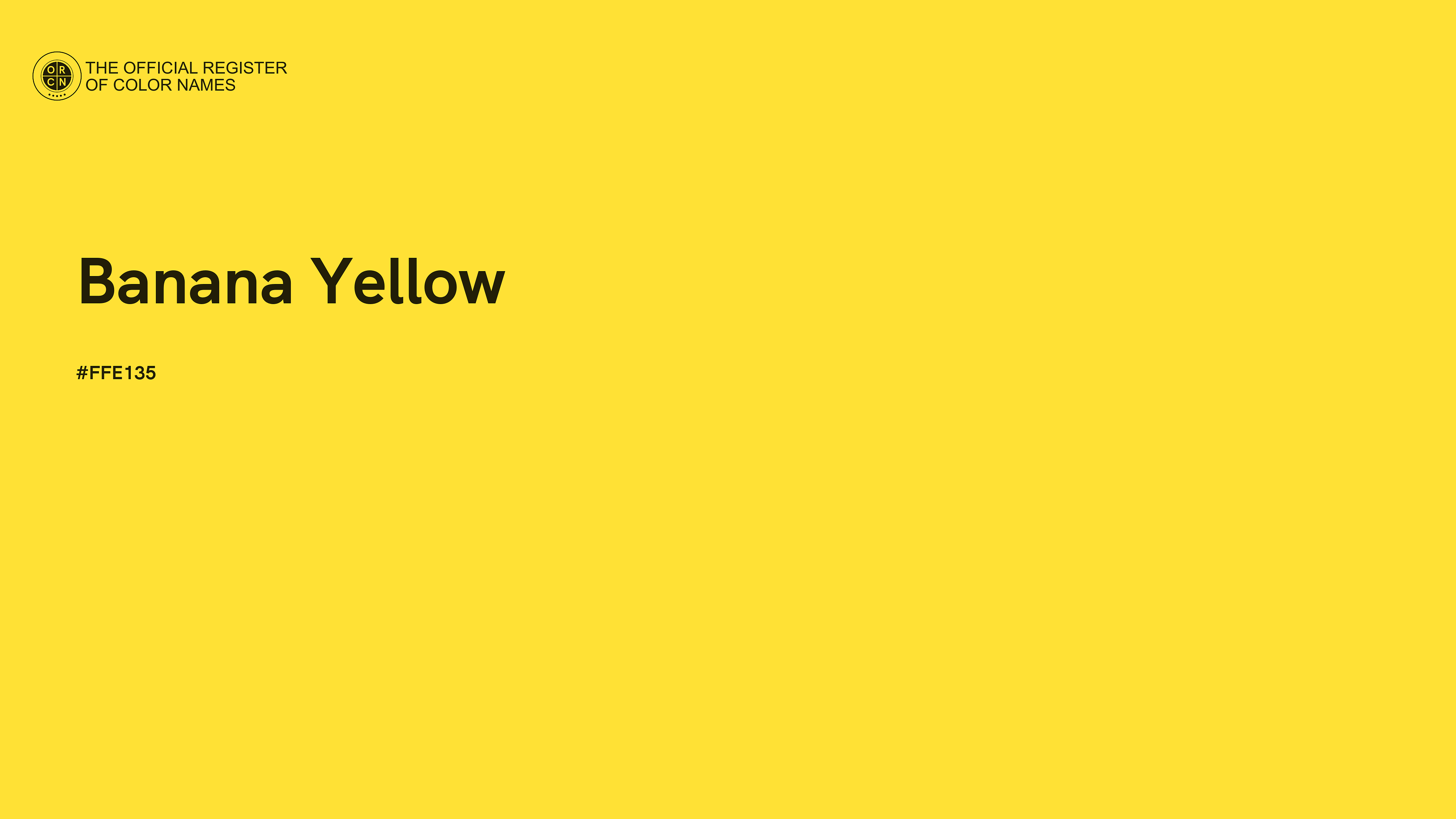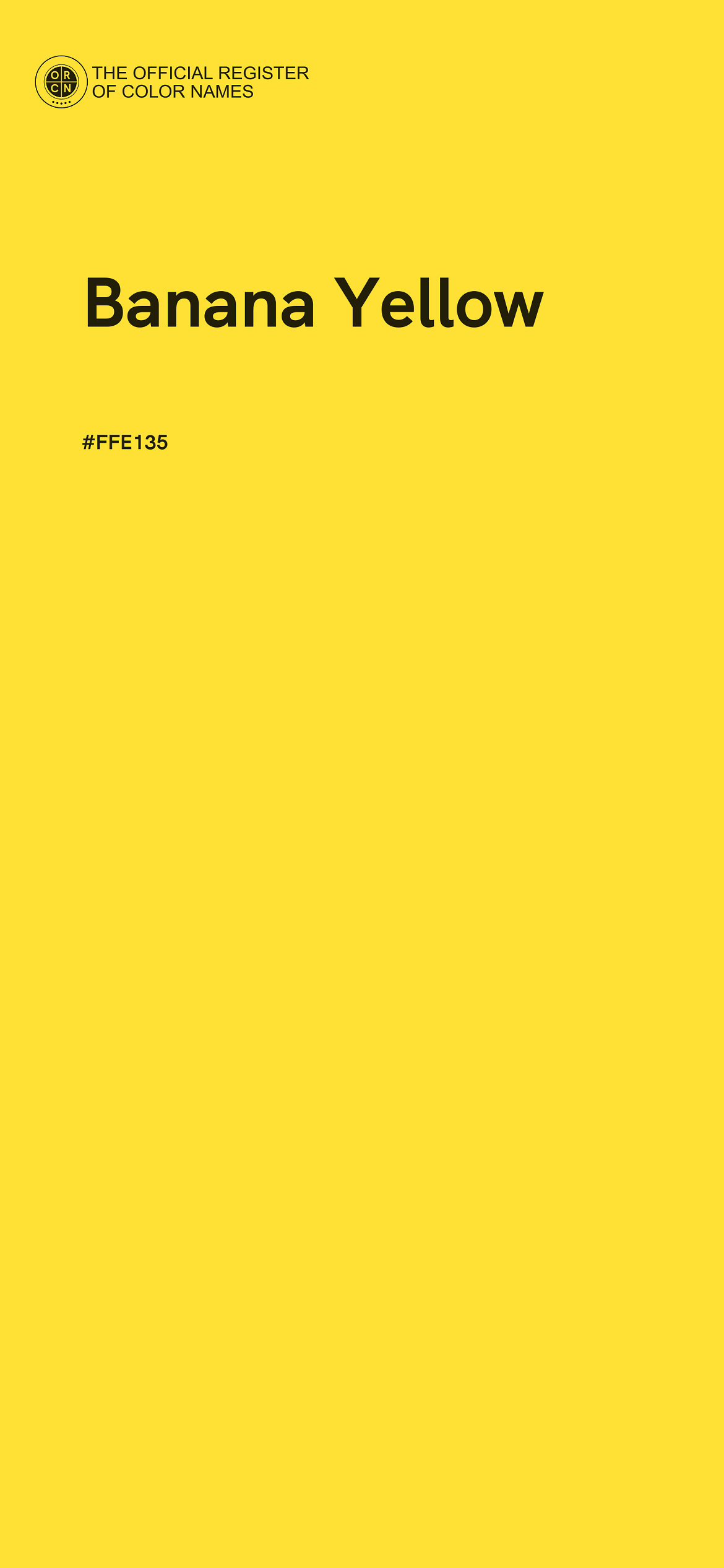 The digital color HEX #FFE135, known as "Banana Yellow", belongs to the Yellow Color Family featuring Full Saturation (Saturation Family) and Very Light (Brightness Family).