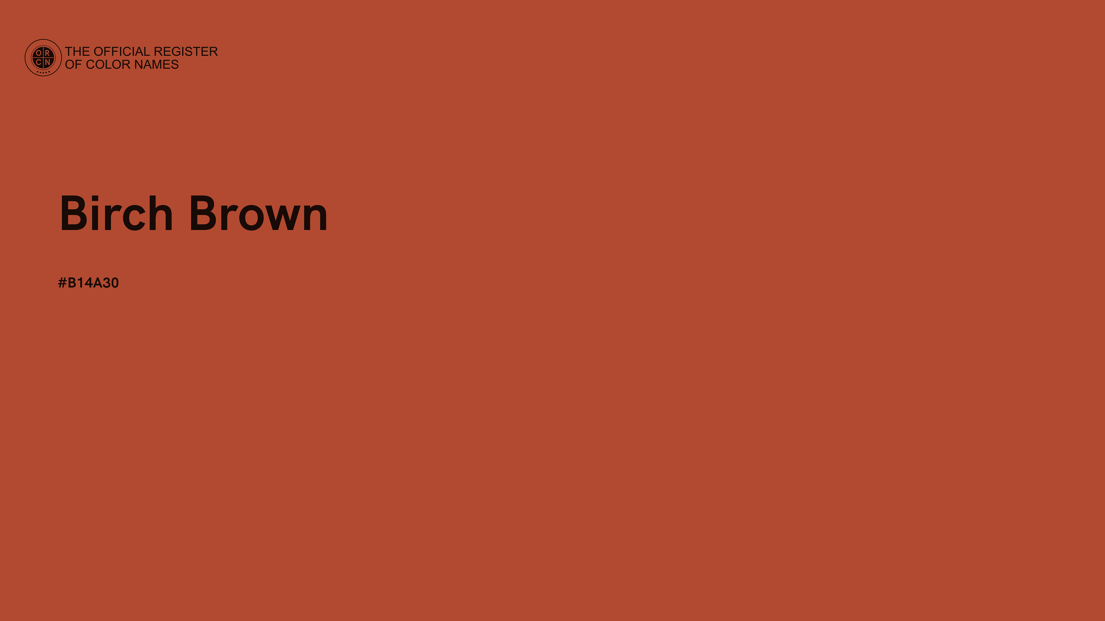 The digital color HEX #B14A30, known as "Birch Brown", belongs to the Red Color Family featuring Moderate Saturation (Saturation Family) and Light (Brightness Family).