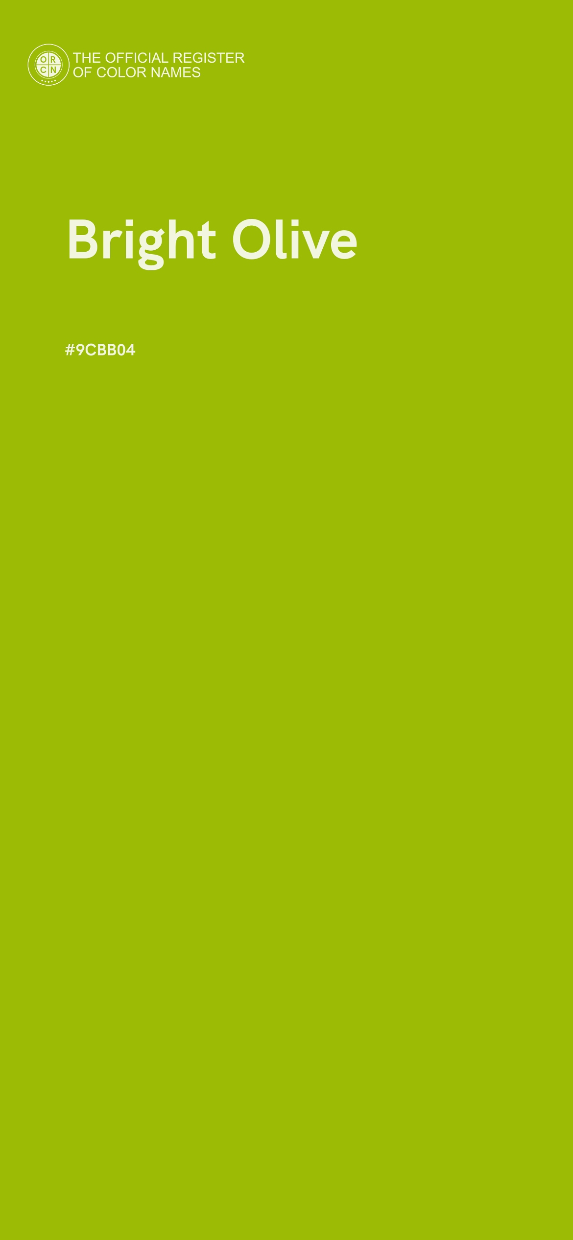 The digital color HEX #9CBB04, known as "Bright Olive", belongs to the Yellow Color Family featuring Full Saturation (Saturation Family) and Neutral (Brightness Family).
