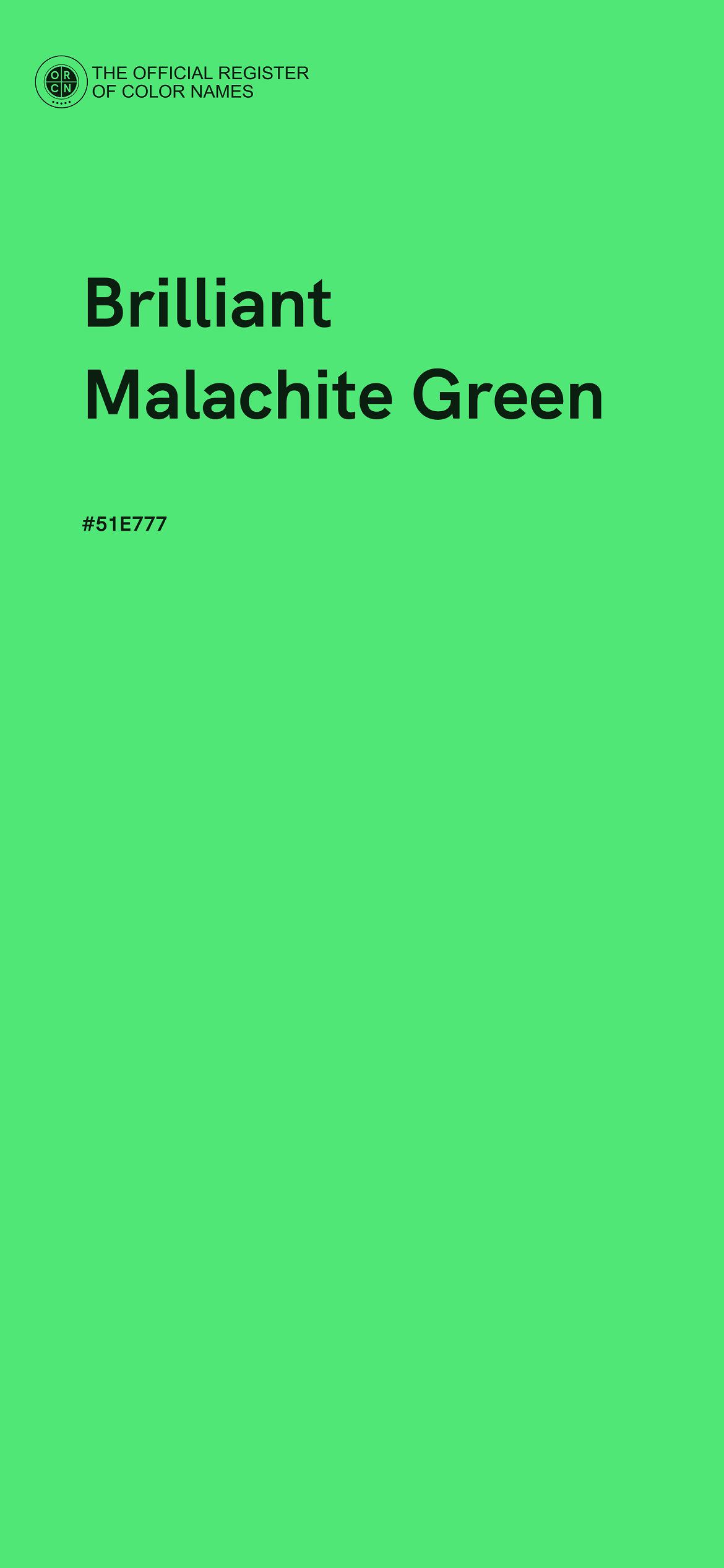 The digital color HEX #51E777, known as "Brilliant Malachite Green", belongs to the Spring Green Color Family featuring High Saturation (Saturation Family) and Very Light (Brightness Family).
