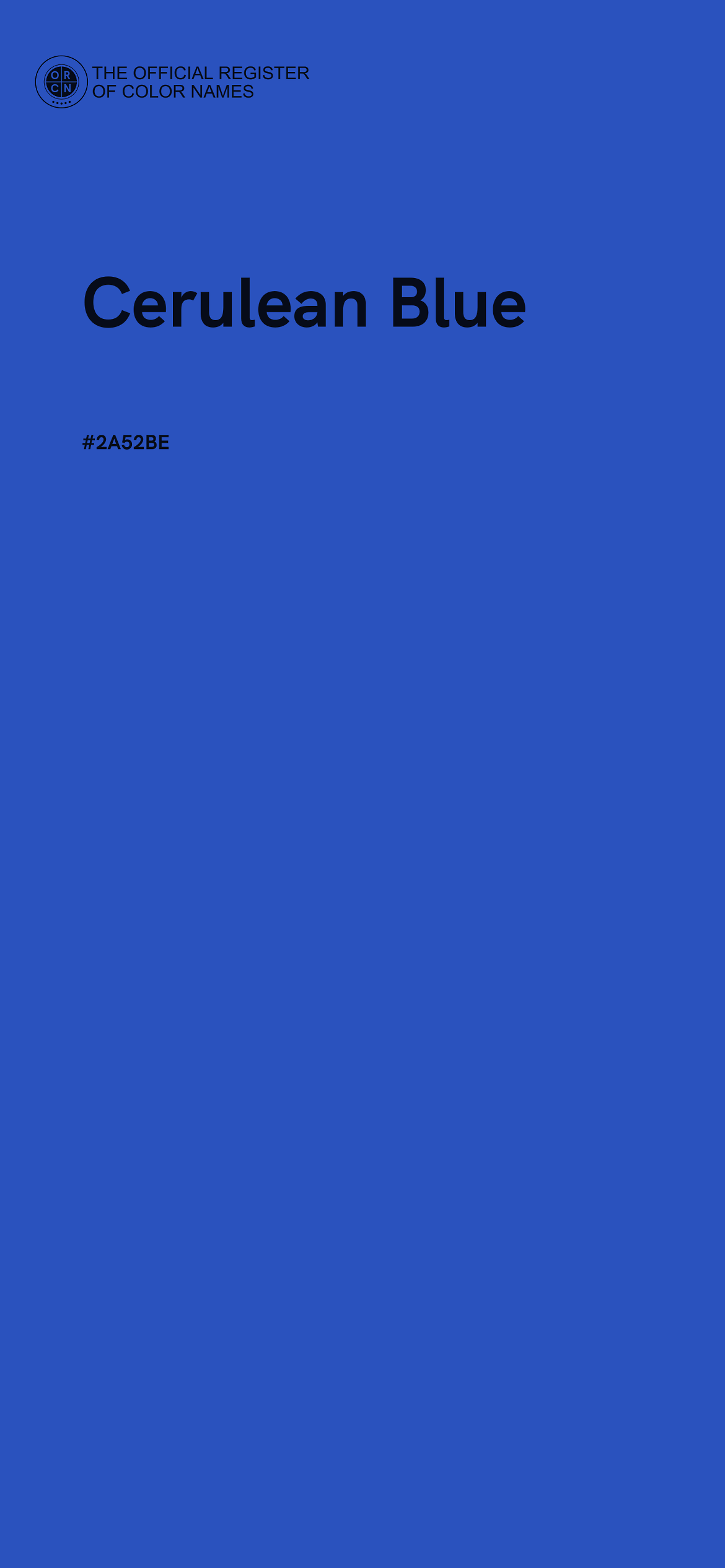 The digital color HEX #2A52BE, known as "Cerulean Blue", belongs to the Azure Color Family featuring High Saturation (Saturation Family) and Light (Brightness Family).