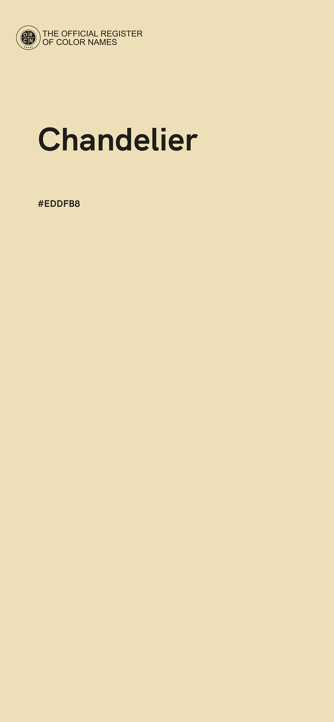 The digital color HEX #EDDFB8, known as "Chandelier", belongs to the Orange Color Family featuring High Saturation (Saturation Family) and Very Light (Brightness Family).