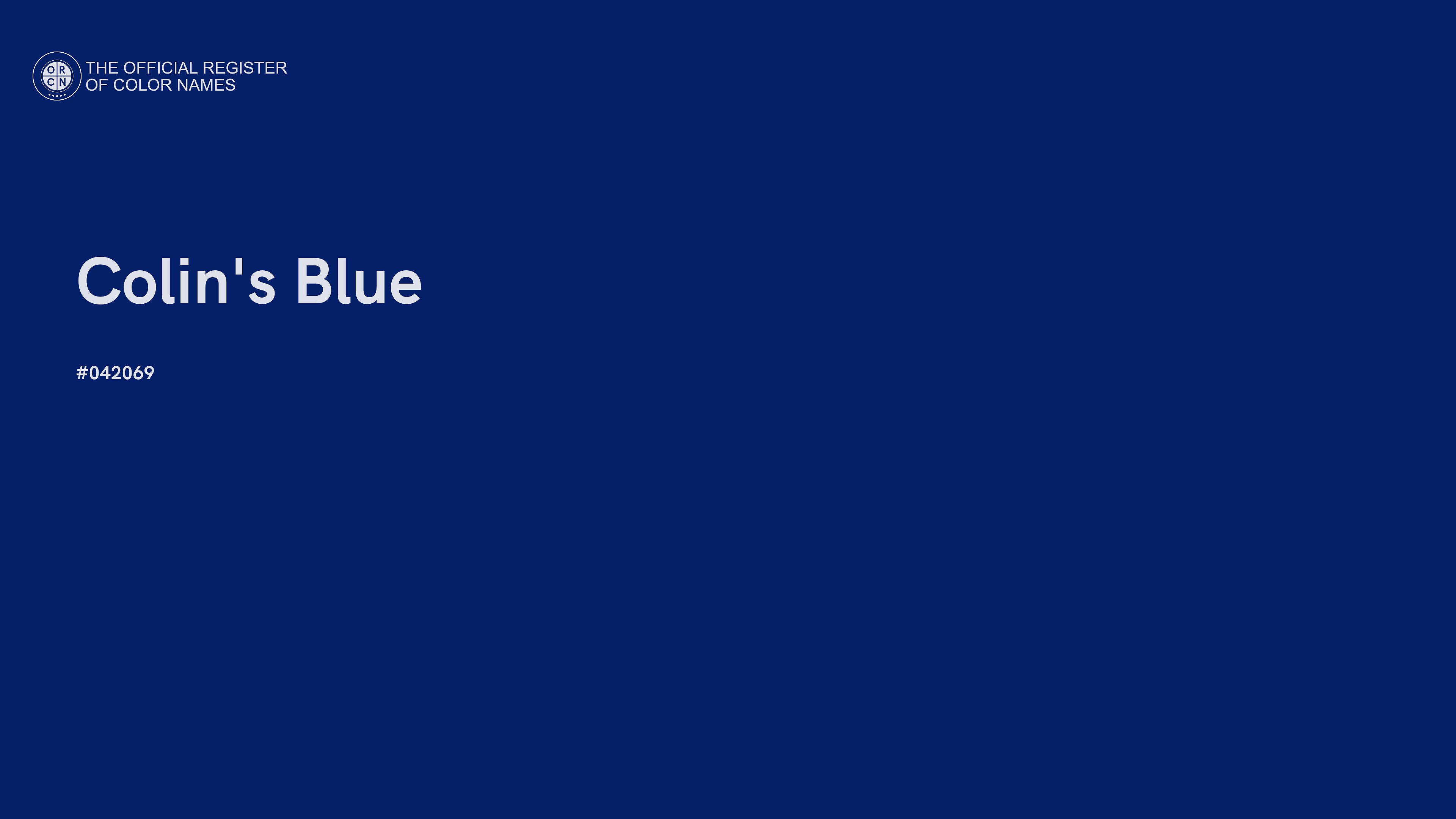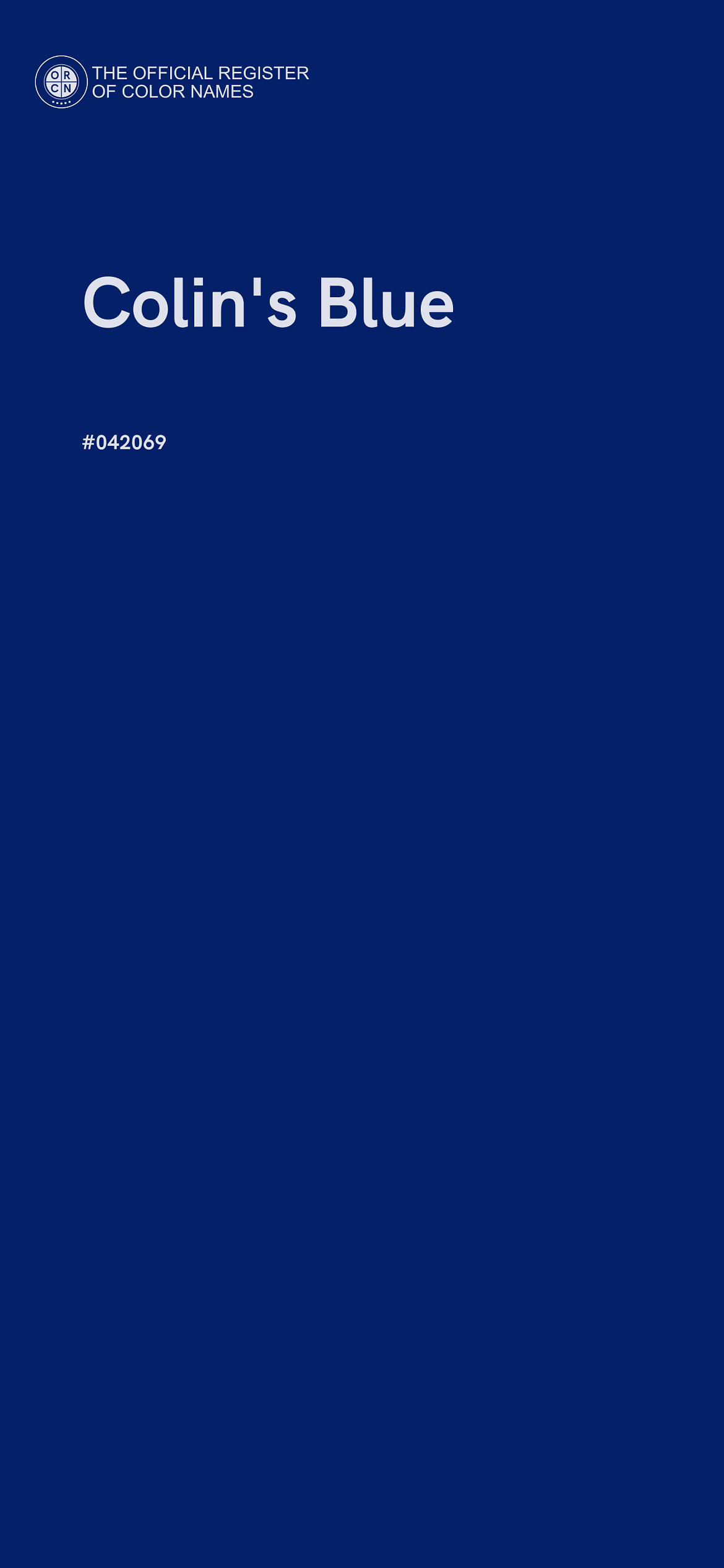 The digital color HEX #042069, known as "Colin's Blue", belongs to the Azure Color Family featuring Full Saturation (Saturation Family) and Dark (Brightness Family).