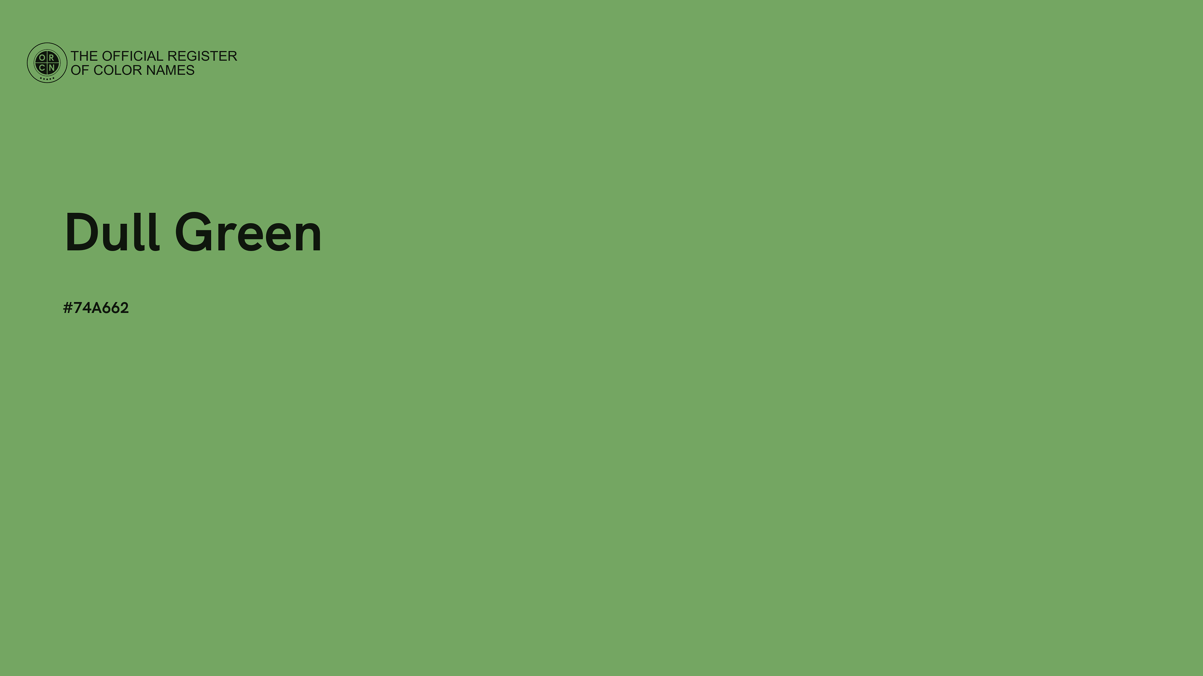 The digital color HEX #74A662, known as "Dull Green", belongs to the Chartreuse Color Family featuring Mild Saturation (Saturation Family) and Light (Brightness Family).
