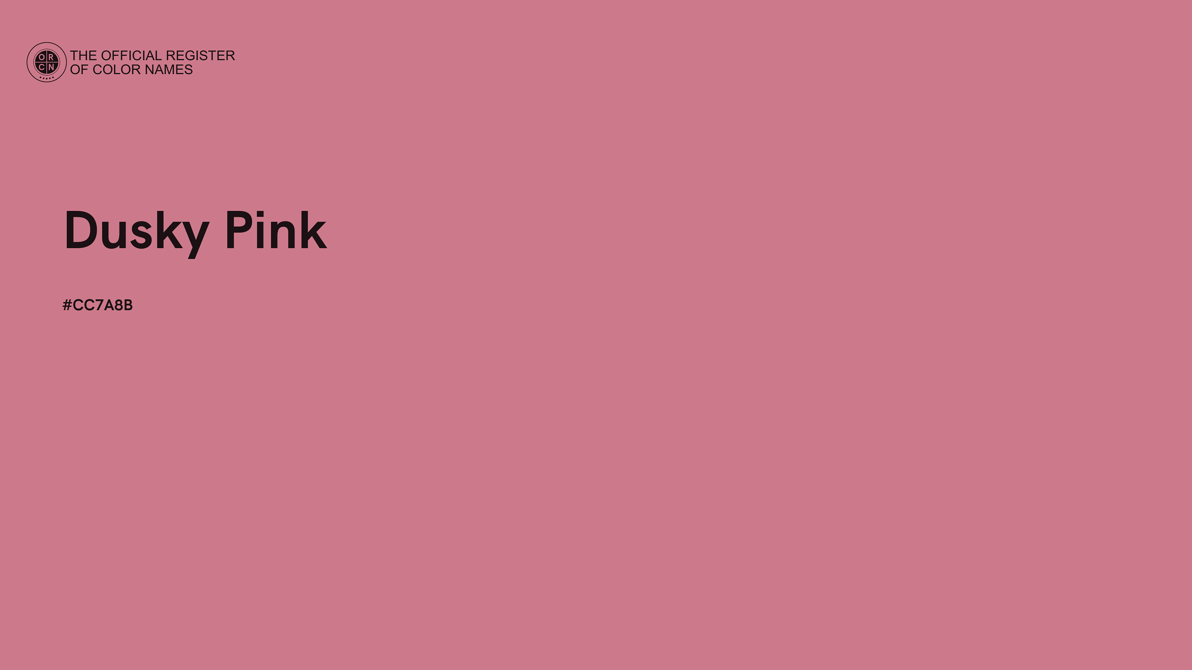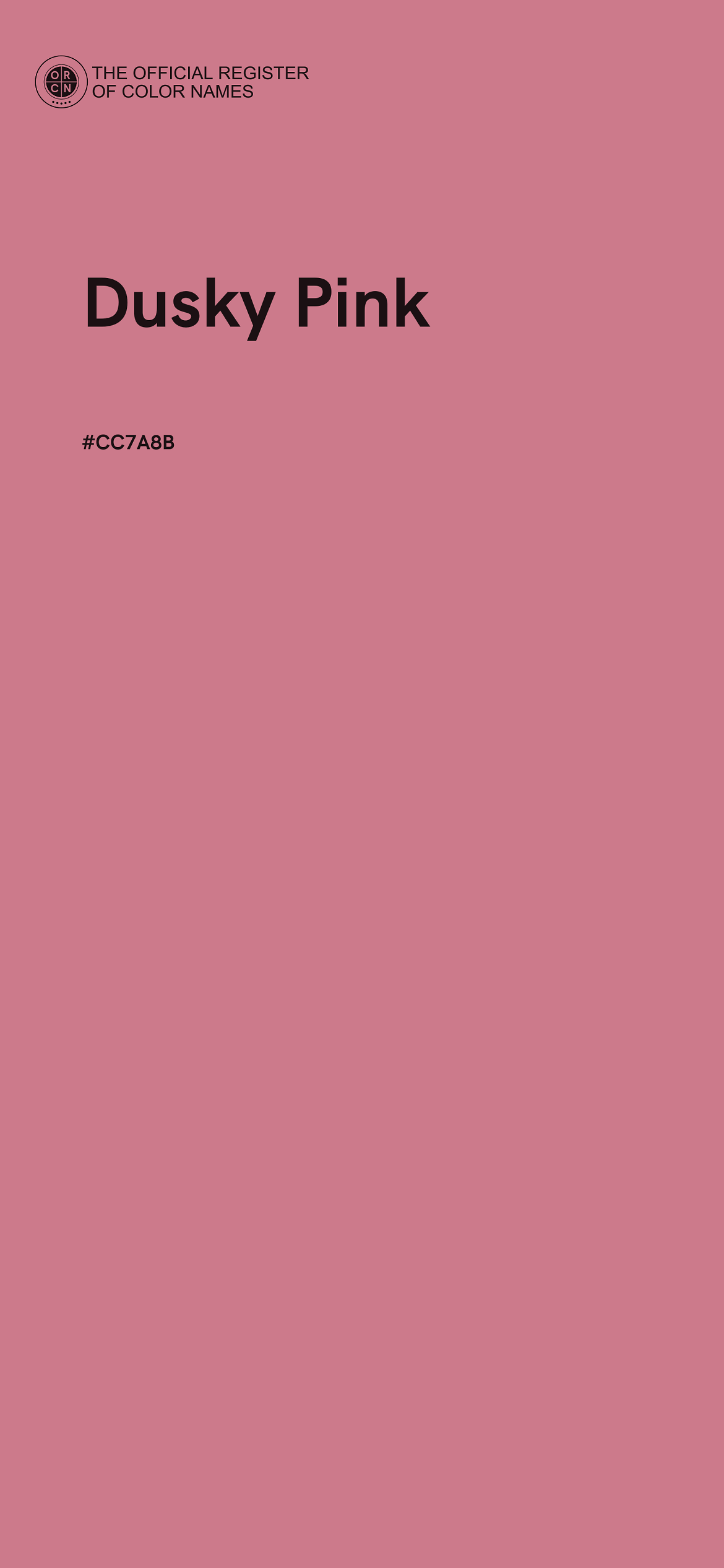 The digital color HEX #CC7A8B, known as "Dusky Pink", belongs to the Red Color Family featuring Moderate Saturation (Saturation Family) and Very Light (Brightness Family).