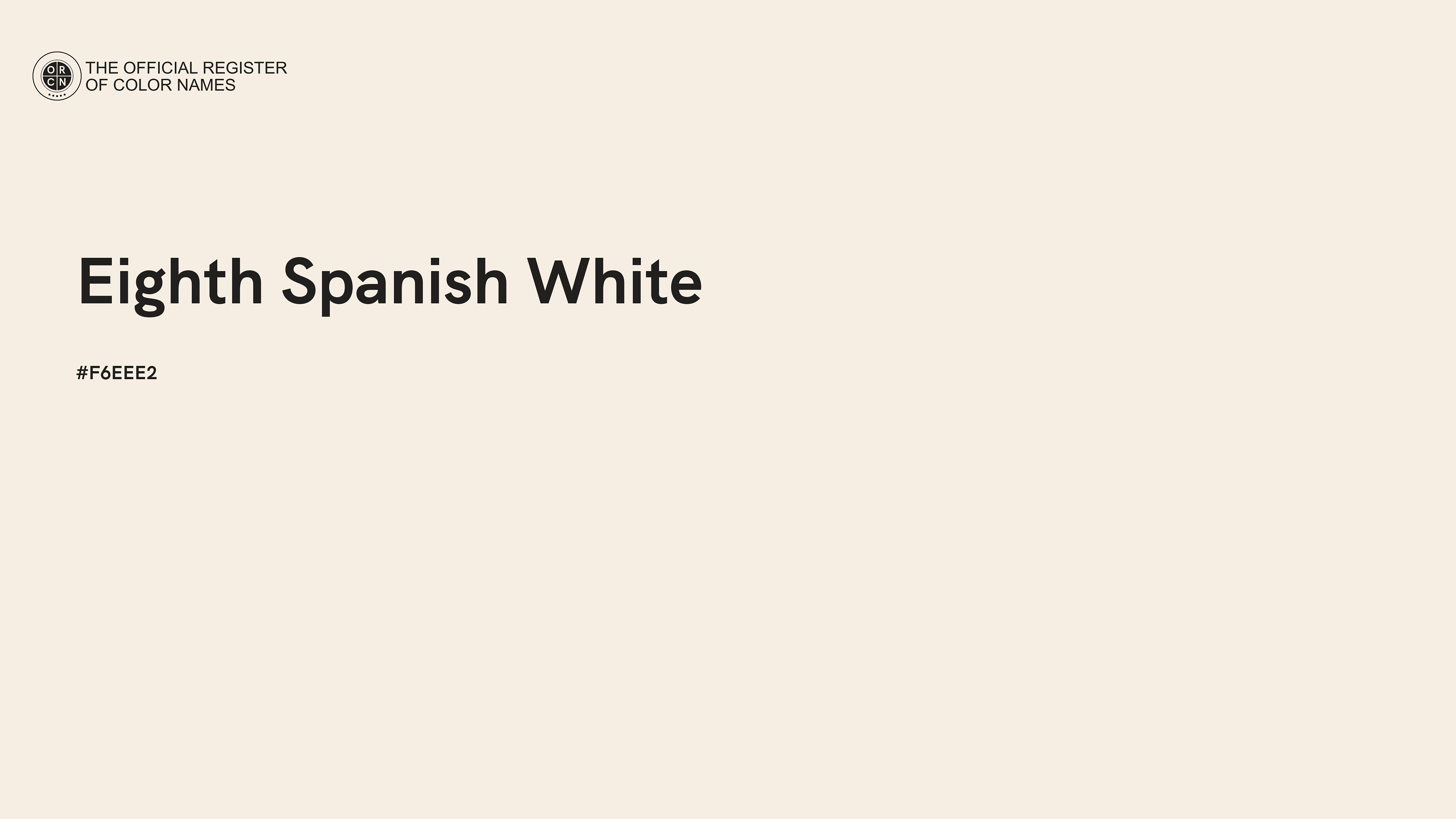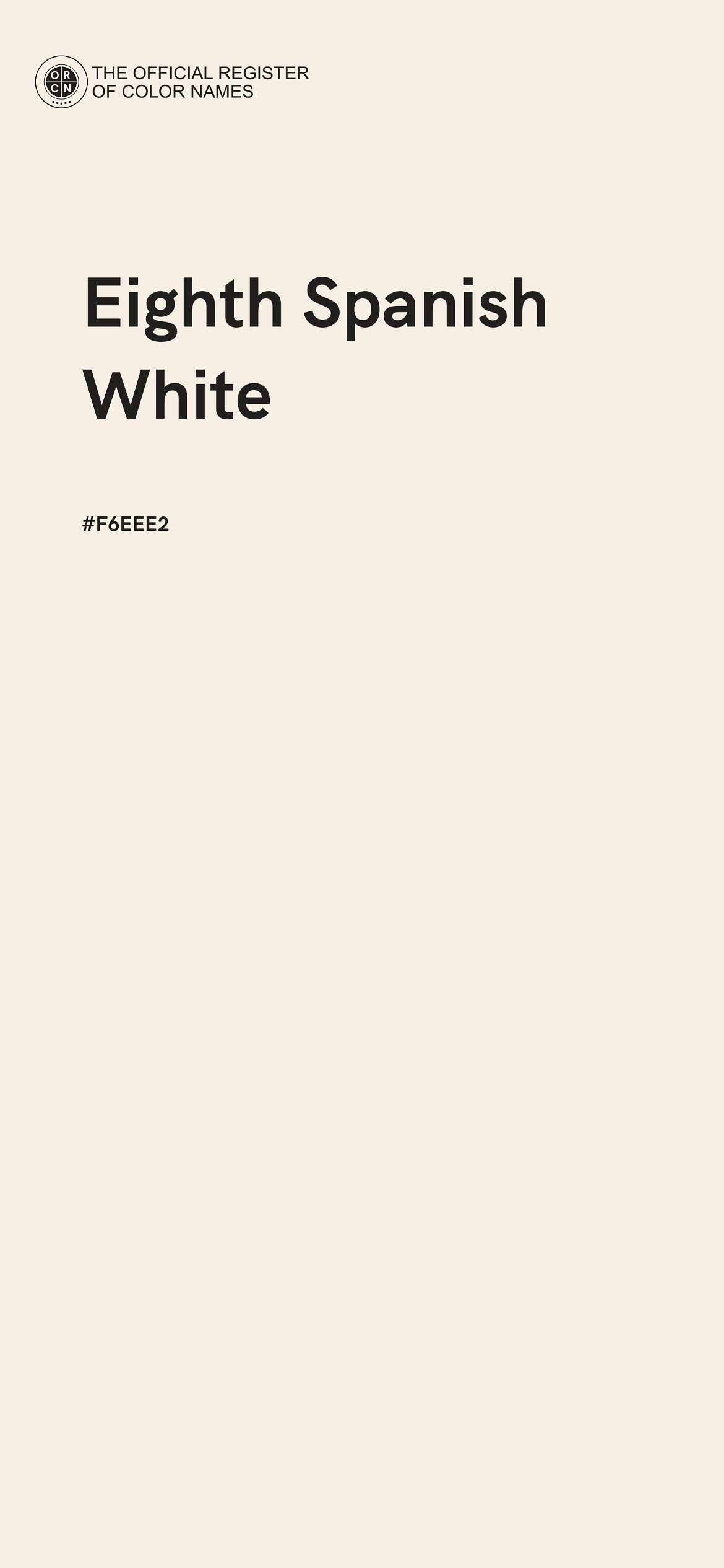 The digital color HEX #F6EEE2, known as "Eighth Spanish White", belongs to the Orange Color Family featuring Moderate Saturation (Saturation Family) and Luminous (Brightness Family).