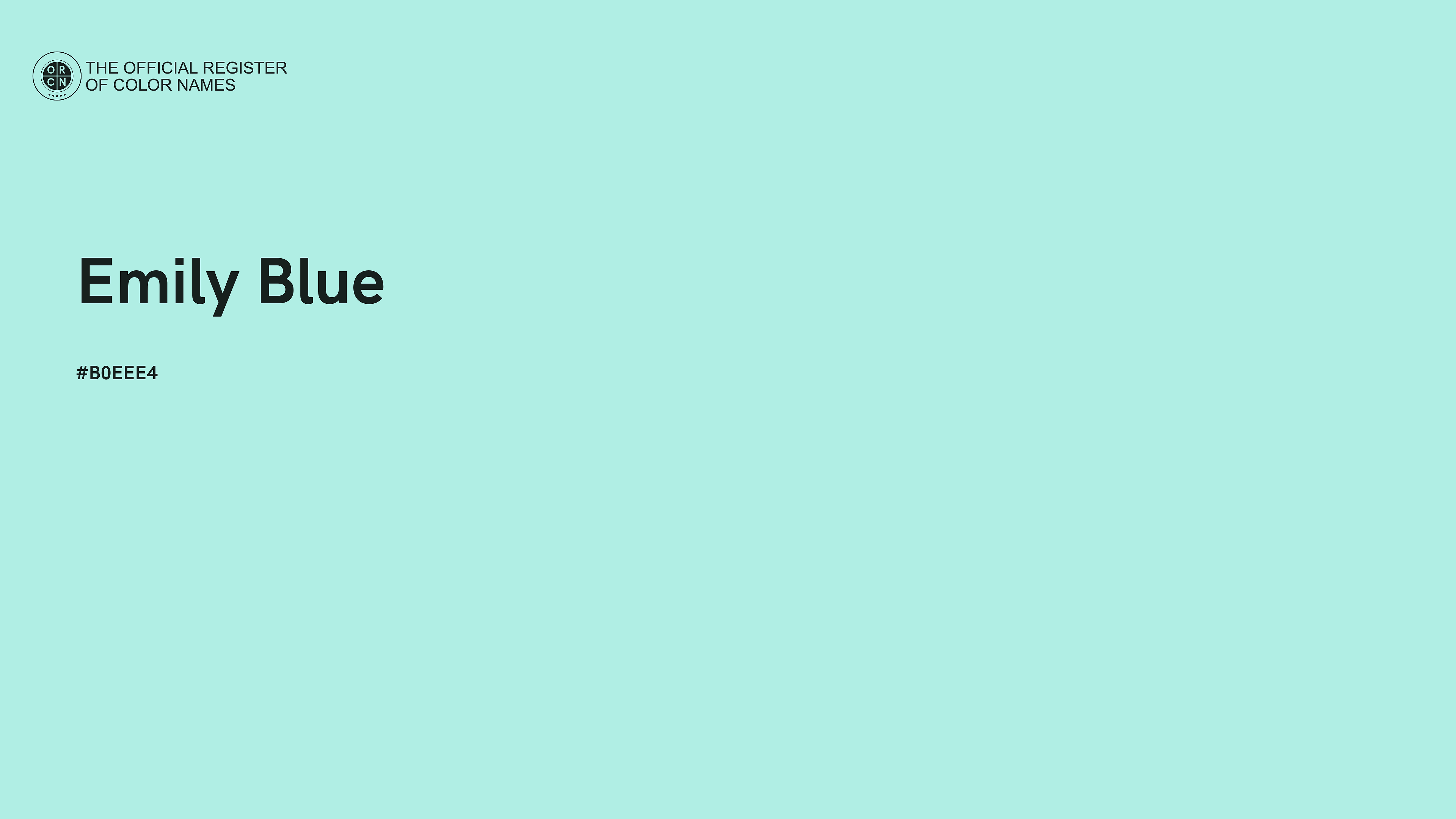 The digital color HEX #B0EEE4, known as "Emily Blue", belongs to the Cyan Color Family featuring High Saturation (Saturation Family) and Very Light (Brightness Family).