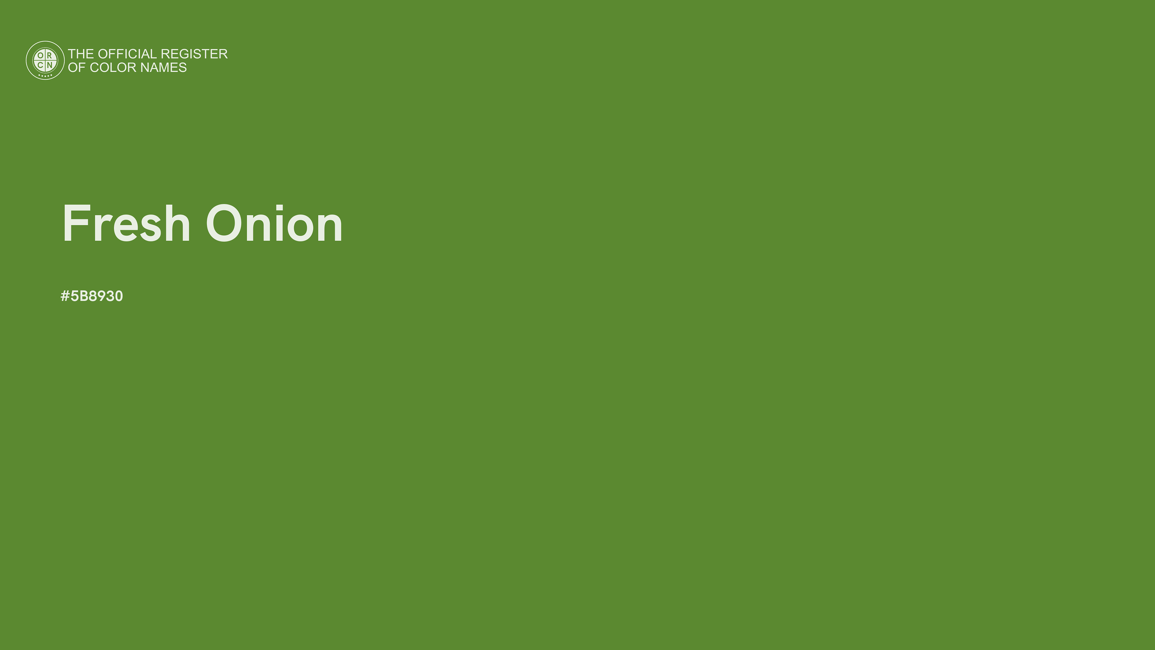 The digital color HEX #5B8930, known as "Fresh Onion", belongs to the Chartreuse Color Family featuring Moderate Saturation (Saturation Family) and Neutral (Brightness Family).