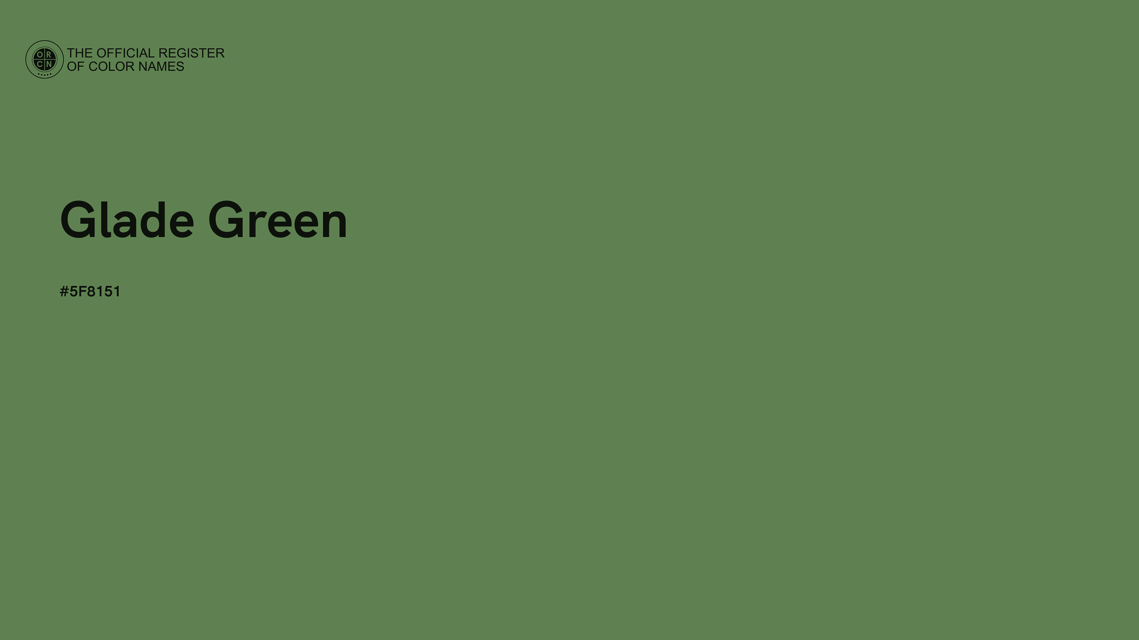 The digital color HEX #5F8151, known as "Glade Green", belongs to the Chartreuse Color Family featuring Low Saturation (Saturation Family) and Light (Brightness Family).