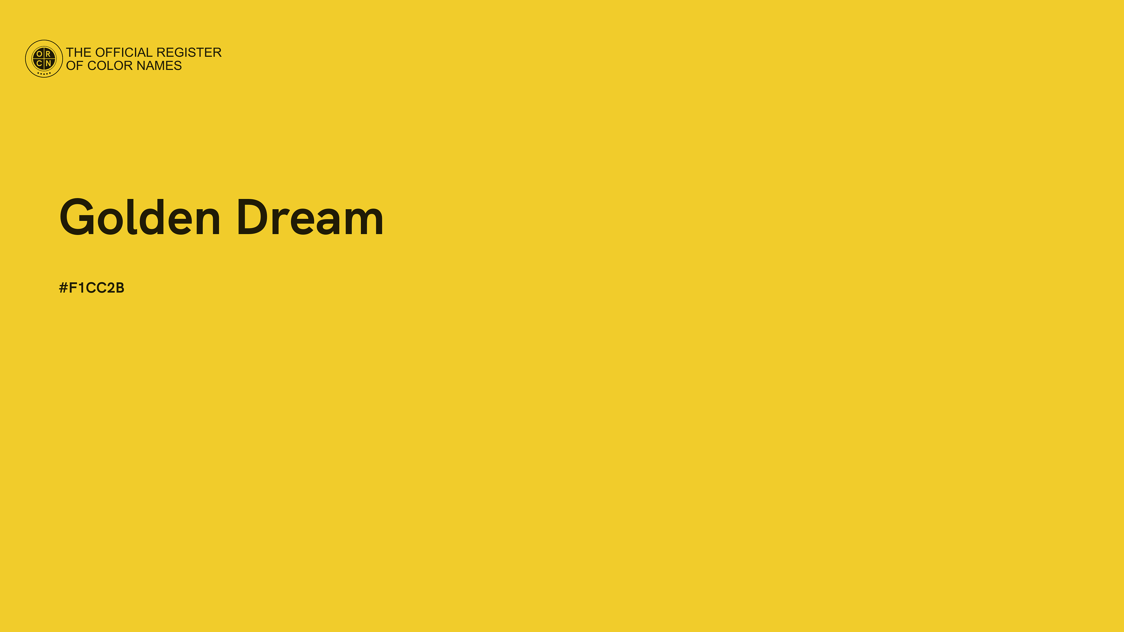 The digital color HEX #F1CC2B, known as "Golden Dream", belongs to the Yellow Color Family featuring Full Saturation (Saturation Family) and Light (Brightness Family).
