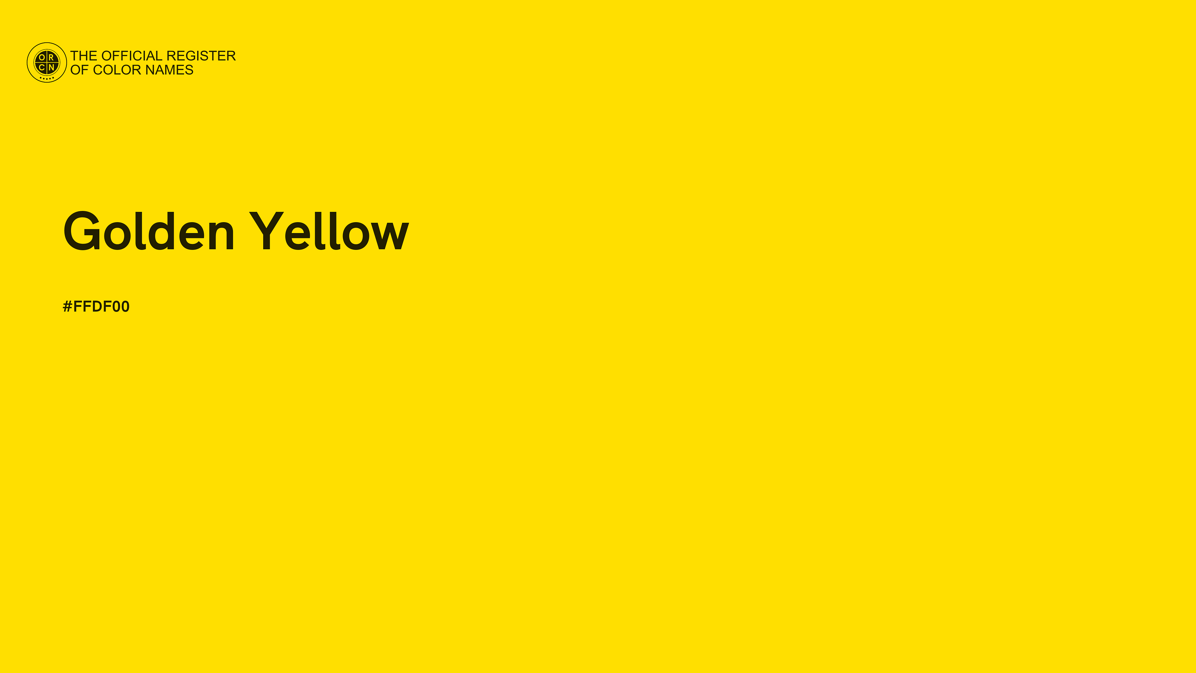 The digital color HEX #FFDF00, known as "Golden Yellow", belongs to the Yellow Color Family featuring Full Saturation (Saturation Family) and Light (Brightness Family).