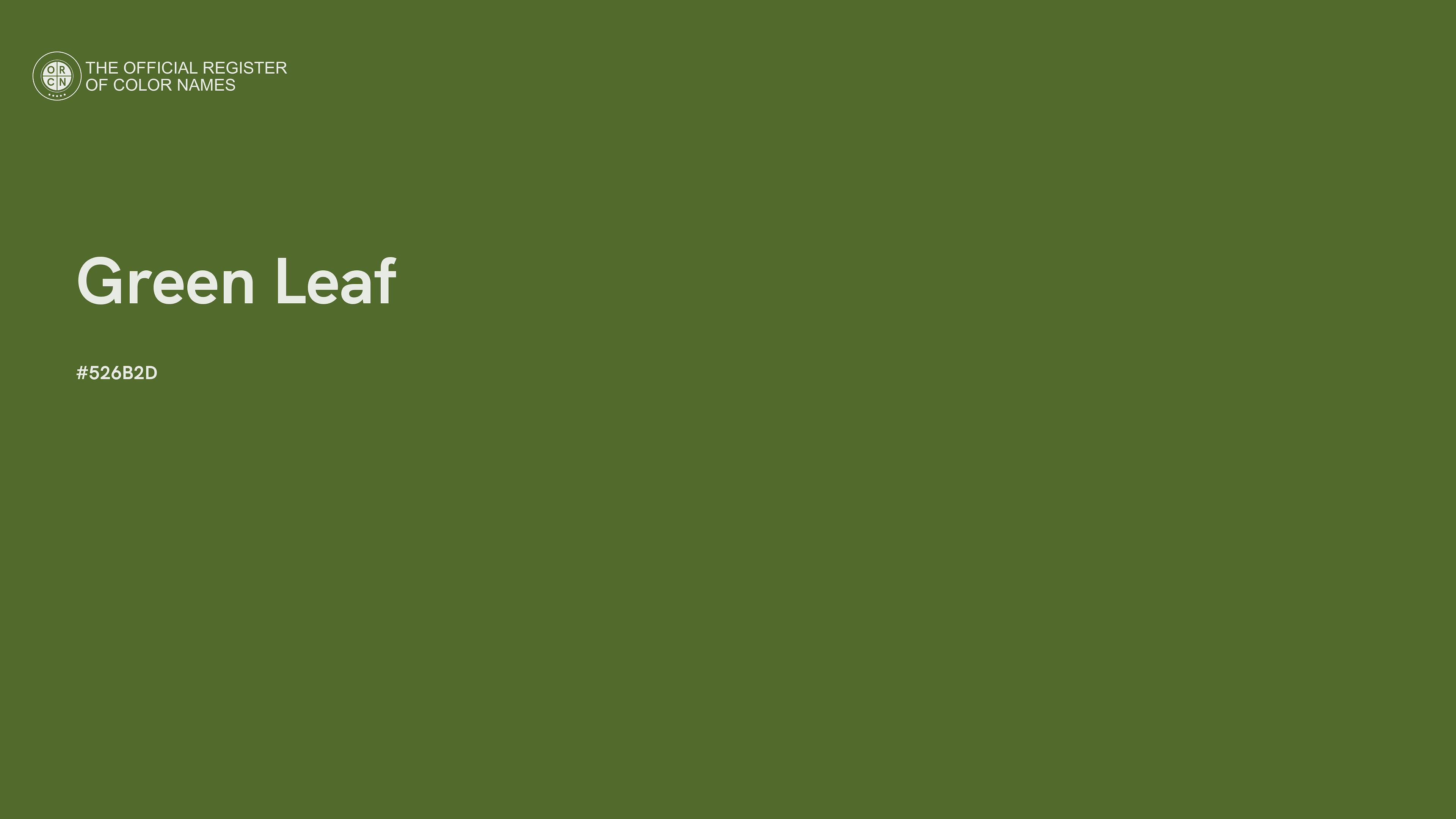 The digital color HEX #526B2D, known as "Green Leaf", belongs to the Chartreuse Color Family featuring Moderate Saturation (Saturation Family) and Neutral (Brightness Family).