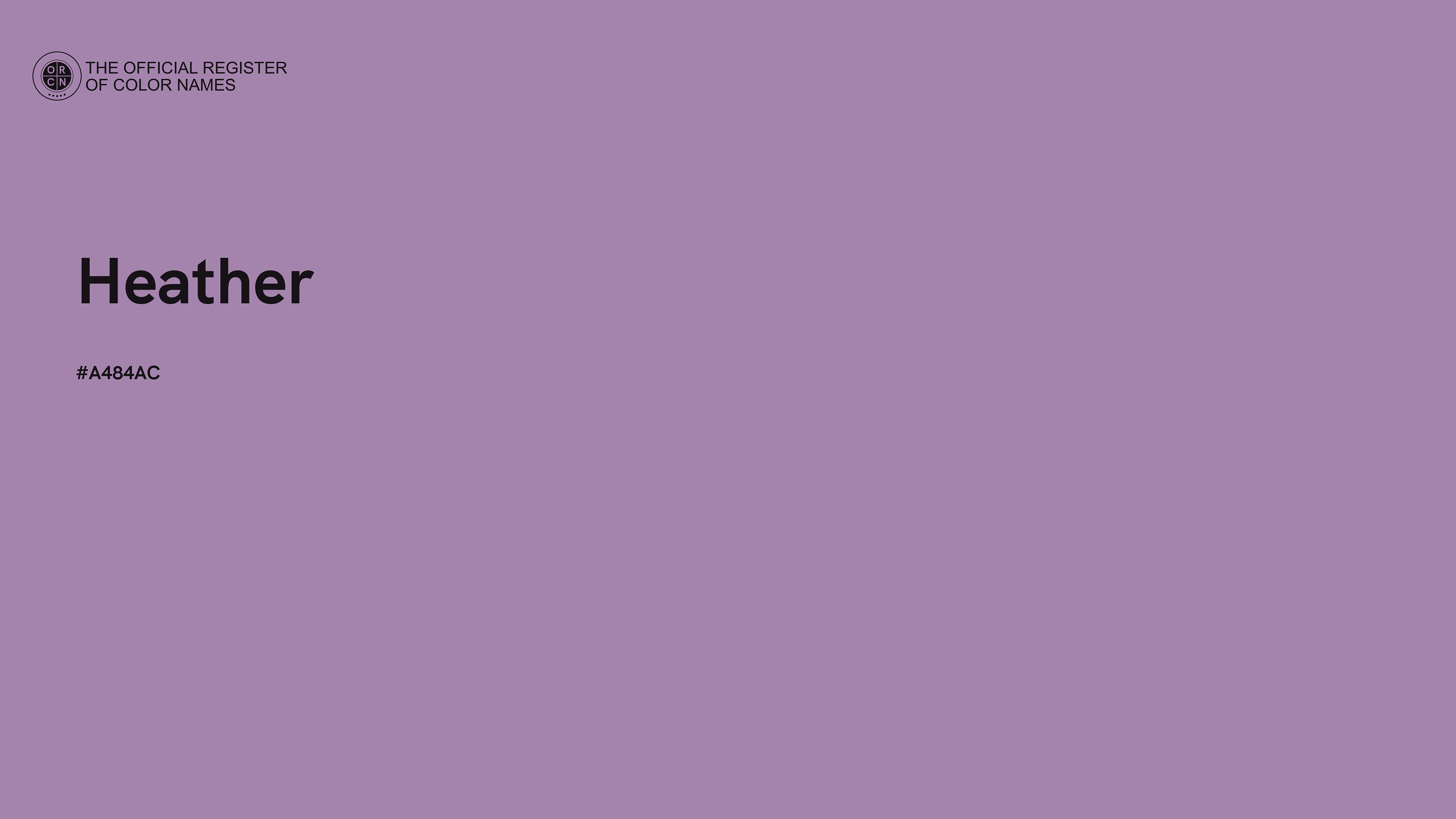 The digital color HEX #A484AC, known as "Heather", belongs to the Magenta Color Family featuring Low Saturation (Saturation Family) and Very Light (Brightness Family).