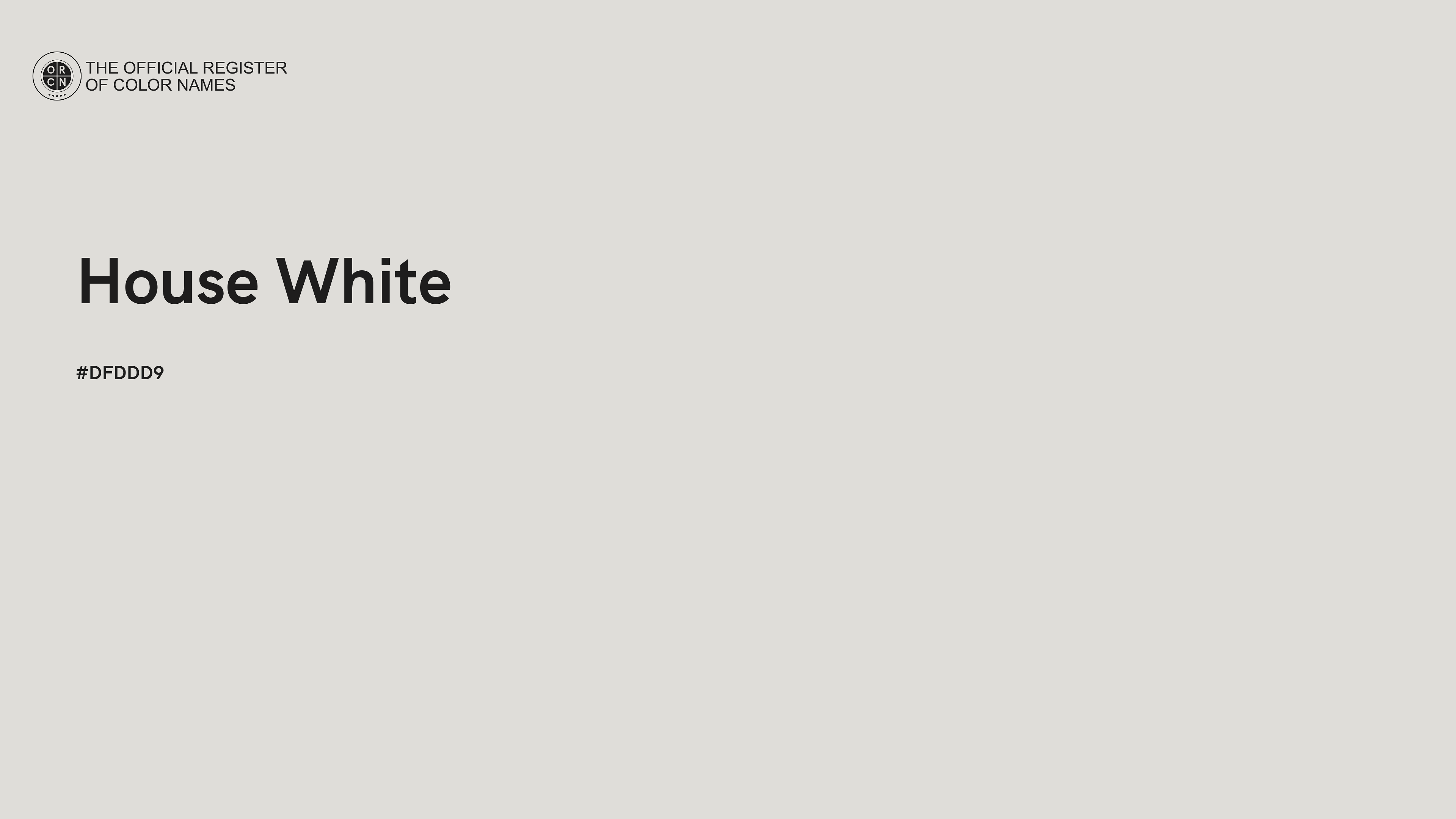 The digital color HEX #DFDDD9, known as "House White", belongs to the Orange Color Family featuring Desaturated (Saturation Family) and Luminous (Brightness Family).