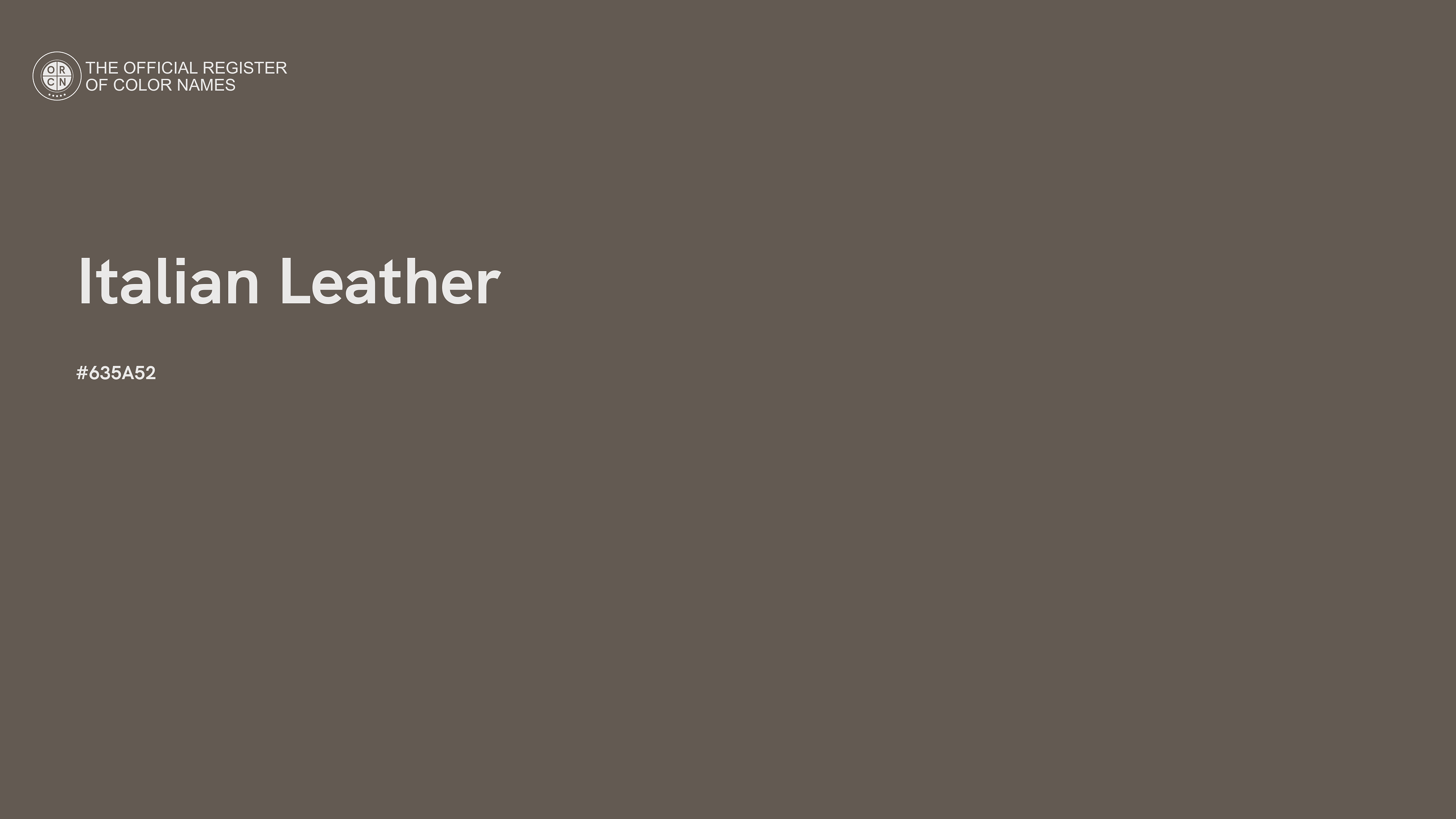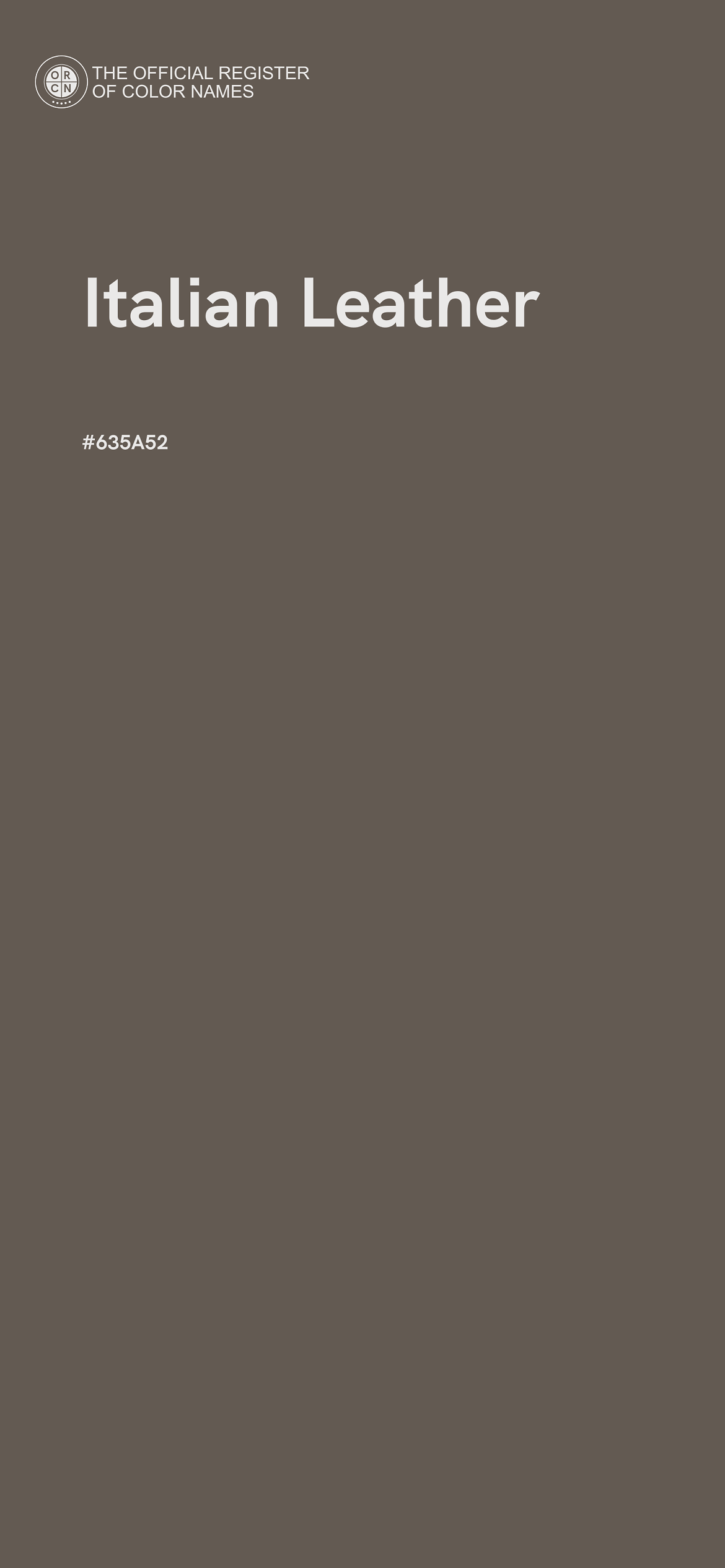 The digital color HEX #635A52, known as "Italian Leather", belongs to the Orange Color Family featuring Desaturated (Saturation Family) and Neutral (Brightness Family).
