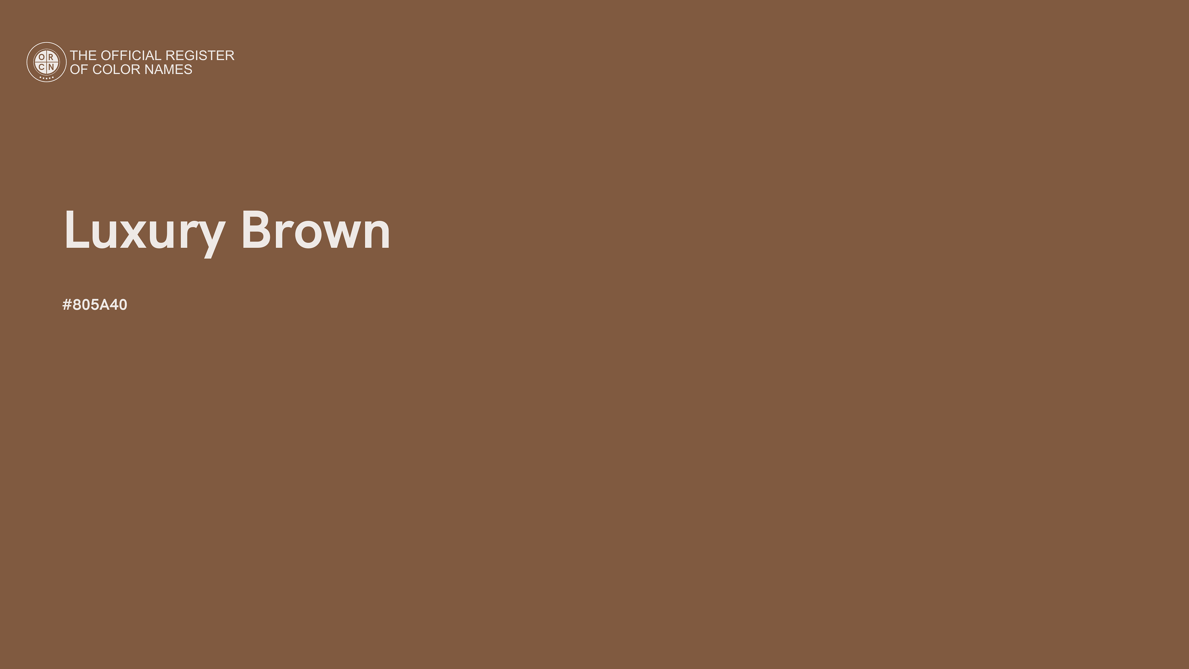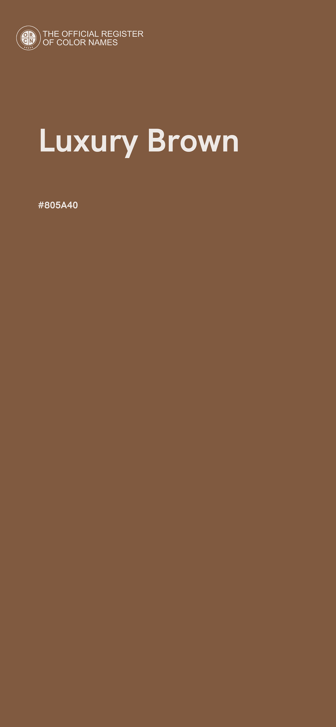 The digital color HEX #805A40, known as "Luxury Brown", belongs to the Orange Color Family featuring Mild Saturation (Saturation Family) and Neutral (Brightness Family).