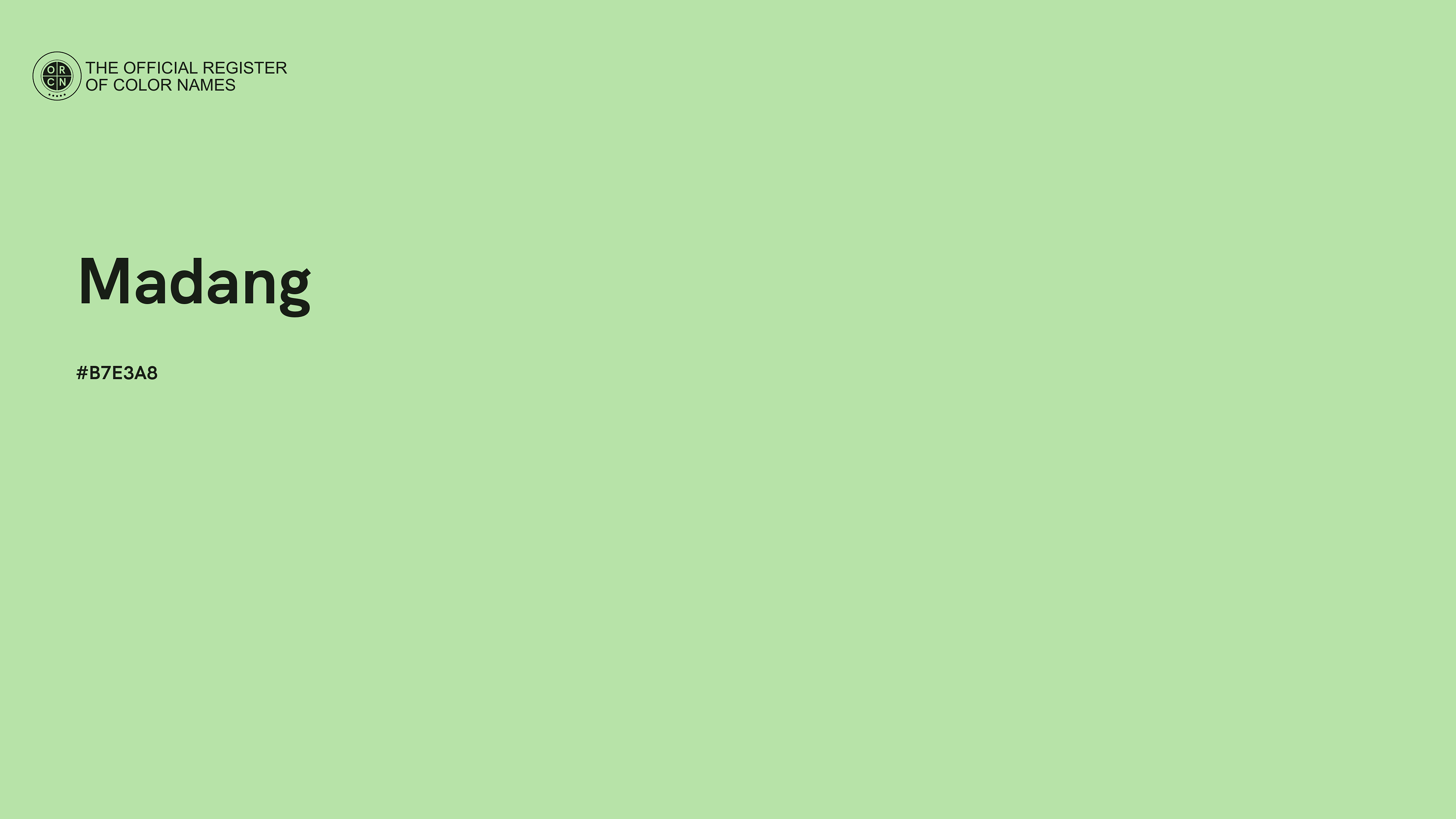 The digital color HEX #B7E3A8, known as "Madang", belongs to the Green Color Family featuring Moderate Saturation (Saturation Family) and Very Light (Brightness Family).