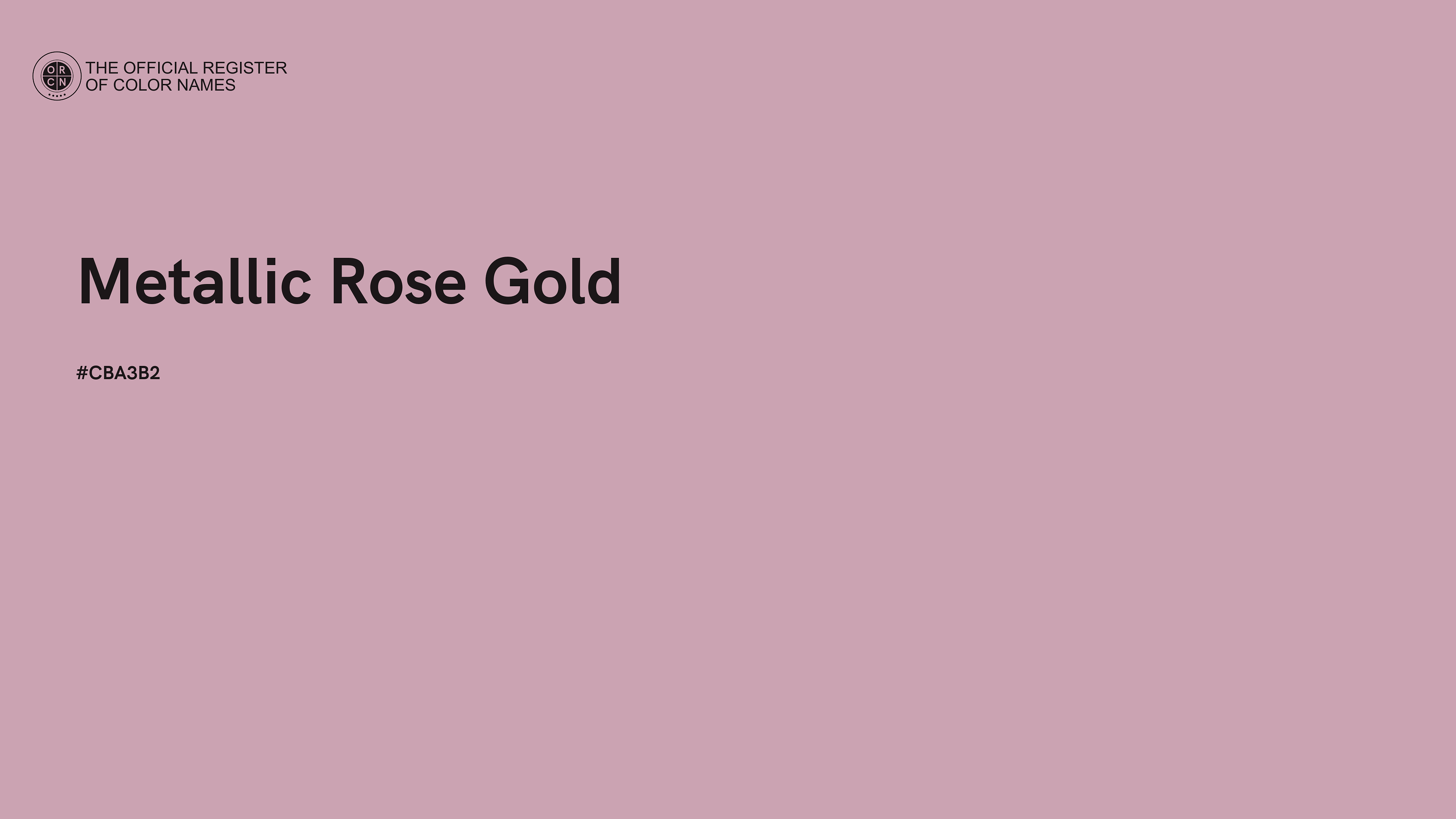 The digital color HEX #CBA3B2, known as "Metallic Rose Gold", belongs to the Rose Color Family featuring Mild Saturation (Saturation Family) and Very Light (Brightness Family).