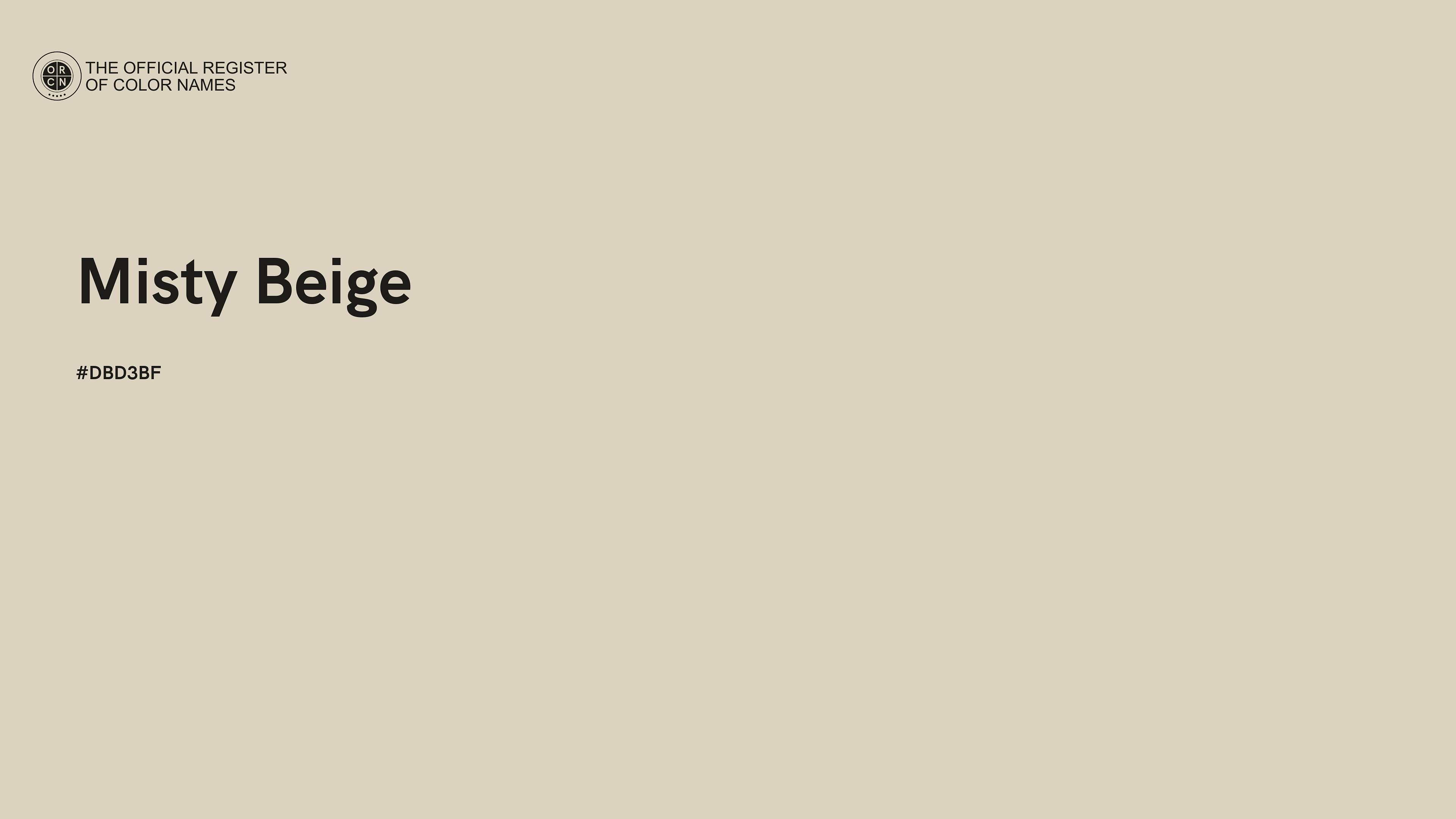 The digital color HEX #DBD3BF, known as "Misty Beige", belongs to the Orange Color Family featuring Mild Saturation (Saturation Family) and Very Light (Brightness Family).