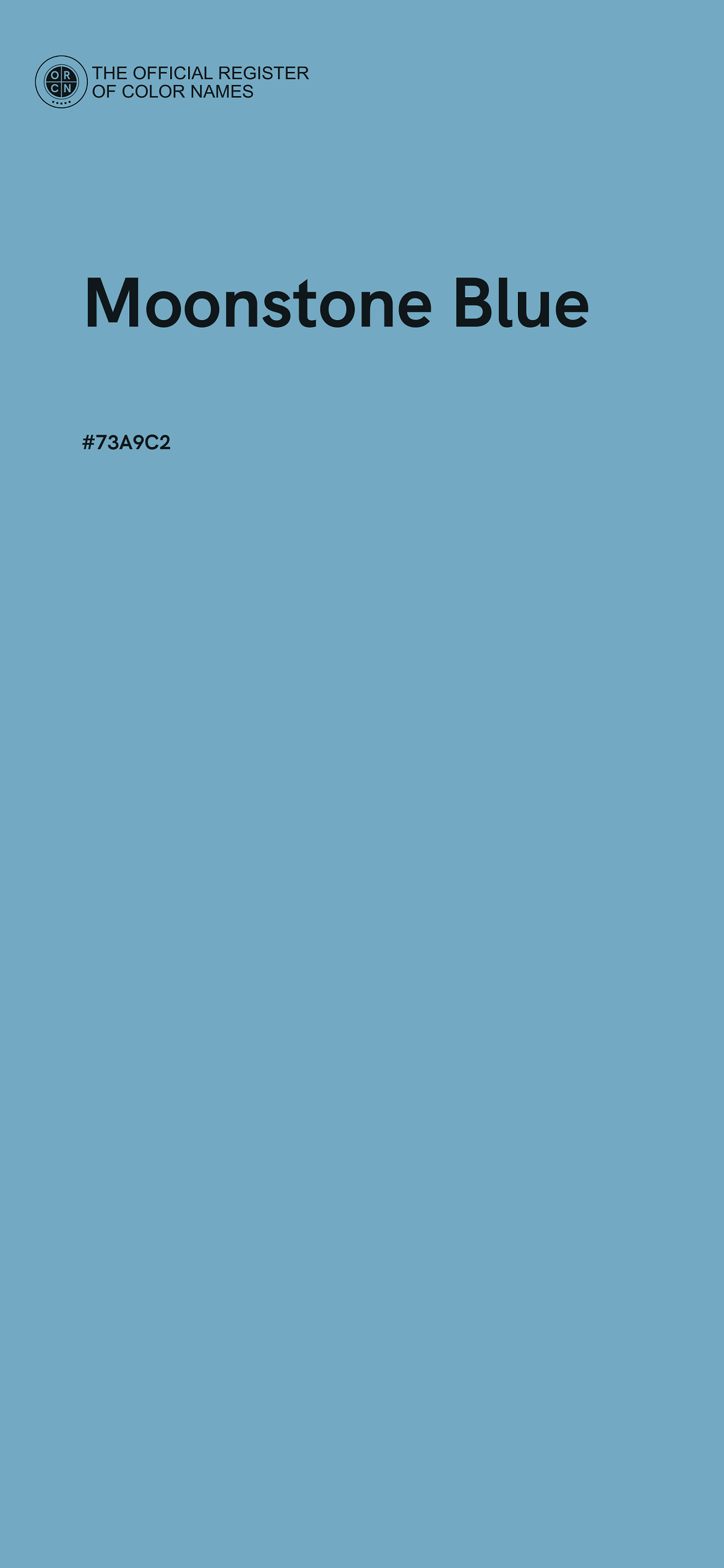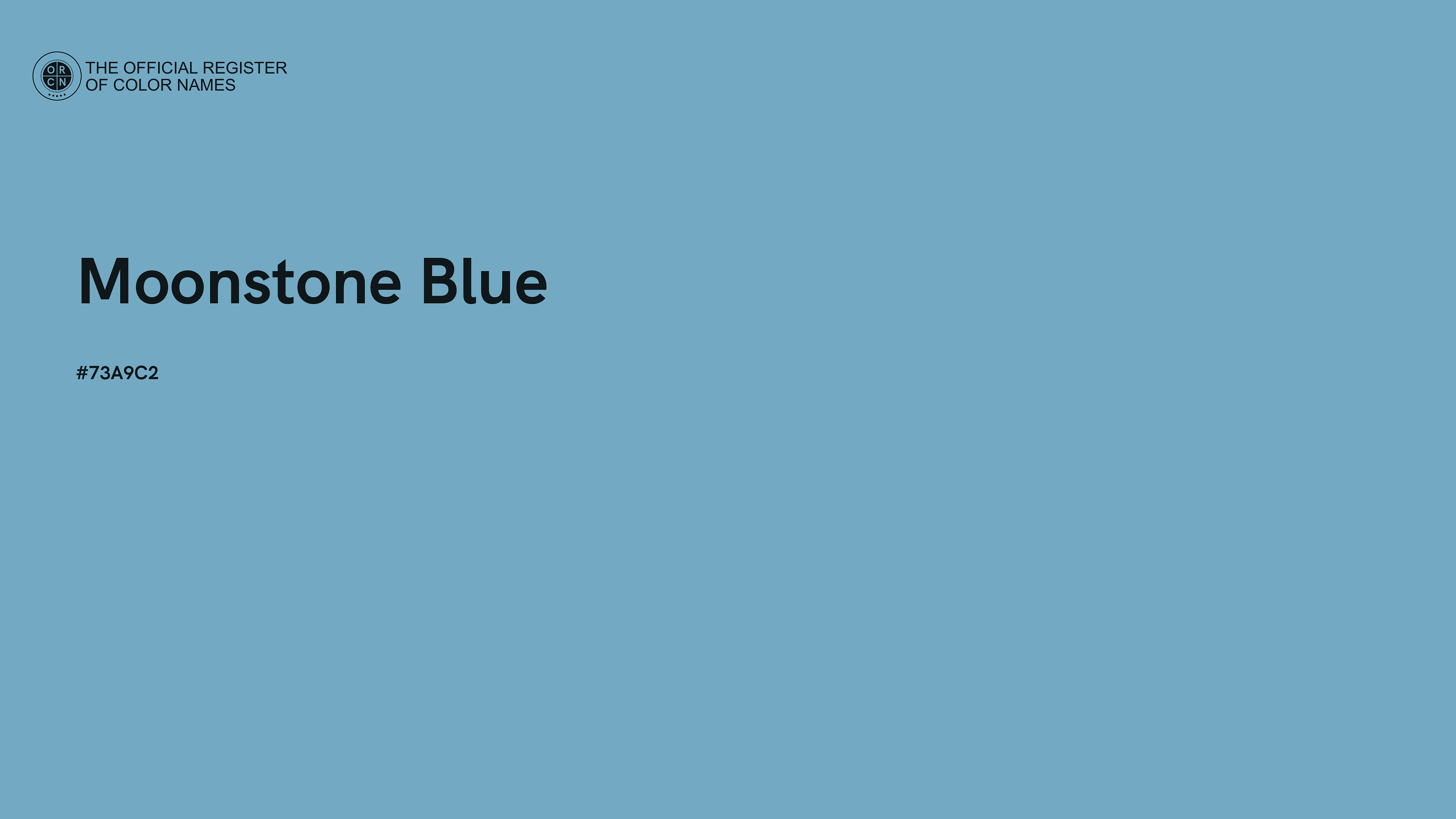 The digital color HEX #73A9C2, known as "Moonstone Blue", belongs to the Azure Color Family featuring Mild Saturation (Saturation Family) and Very Light (Brightness Family).