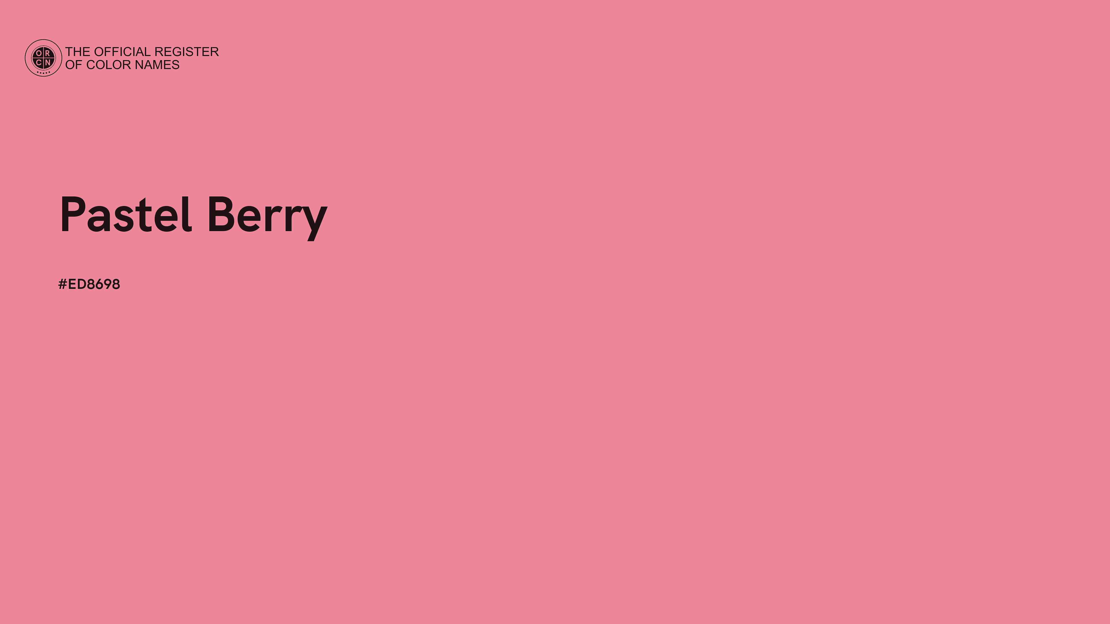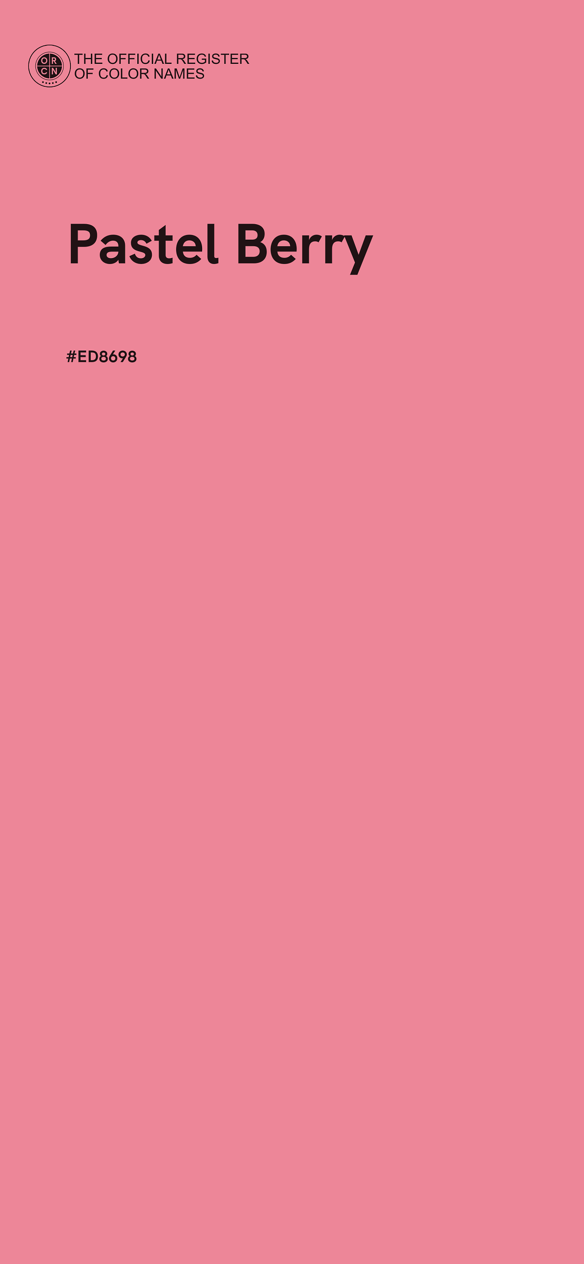The digital color HEX #ED8698, known as "Pastel Berry", belongs to the Red Color Family featuring High Saturation (Saturation Family) and Very Light (Brightness Family).