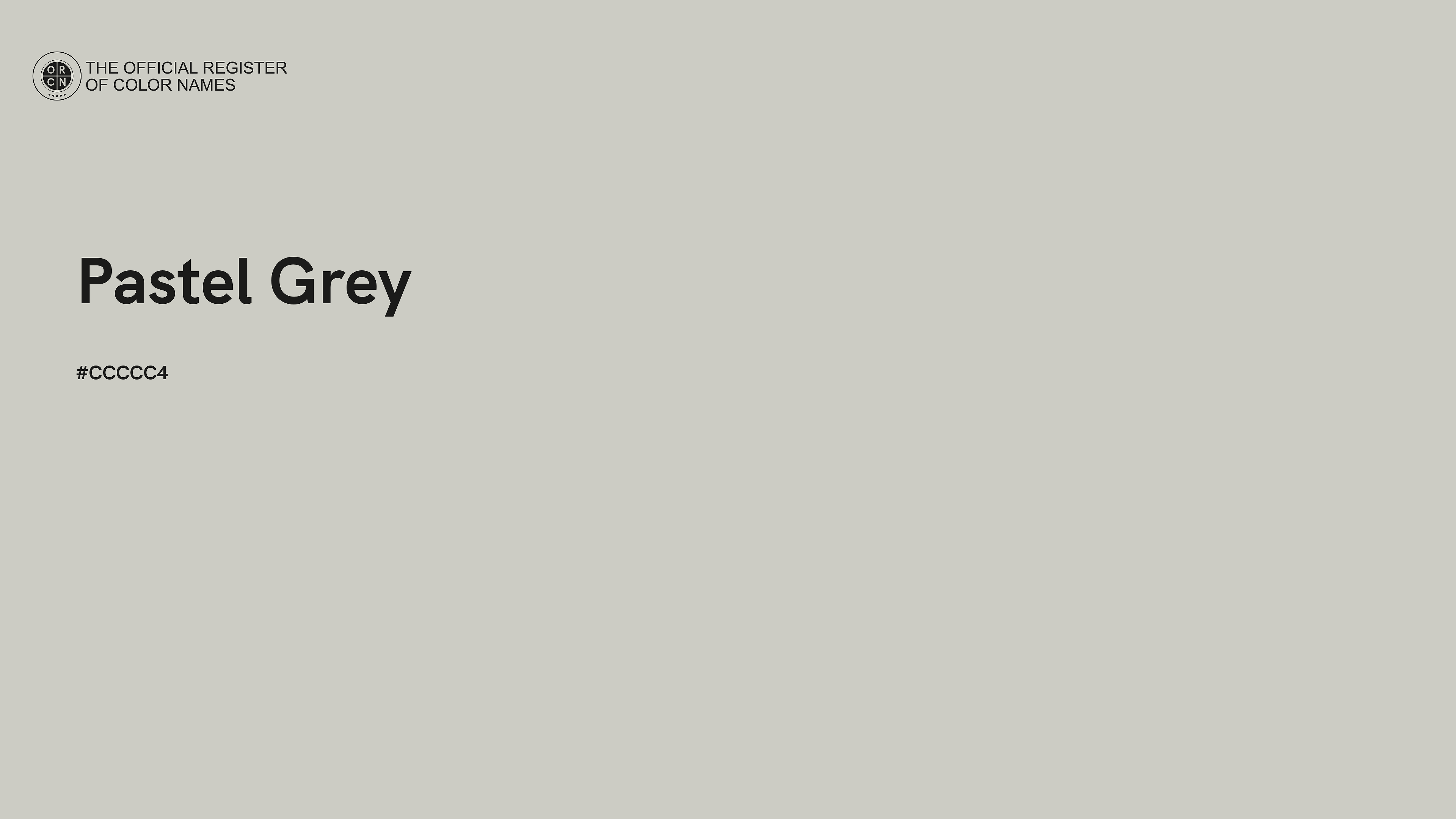 The digital color HEX #CCCCC4, known as "Pastel Grey", belongs to the Yellow Color Family featuring Desaturated (Saturation Family) and Very Light (Brightness Family).