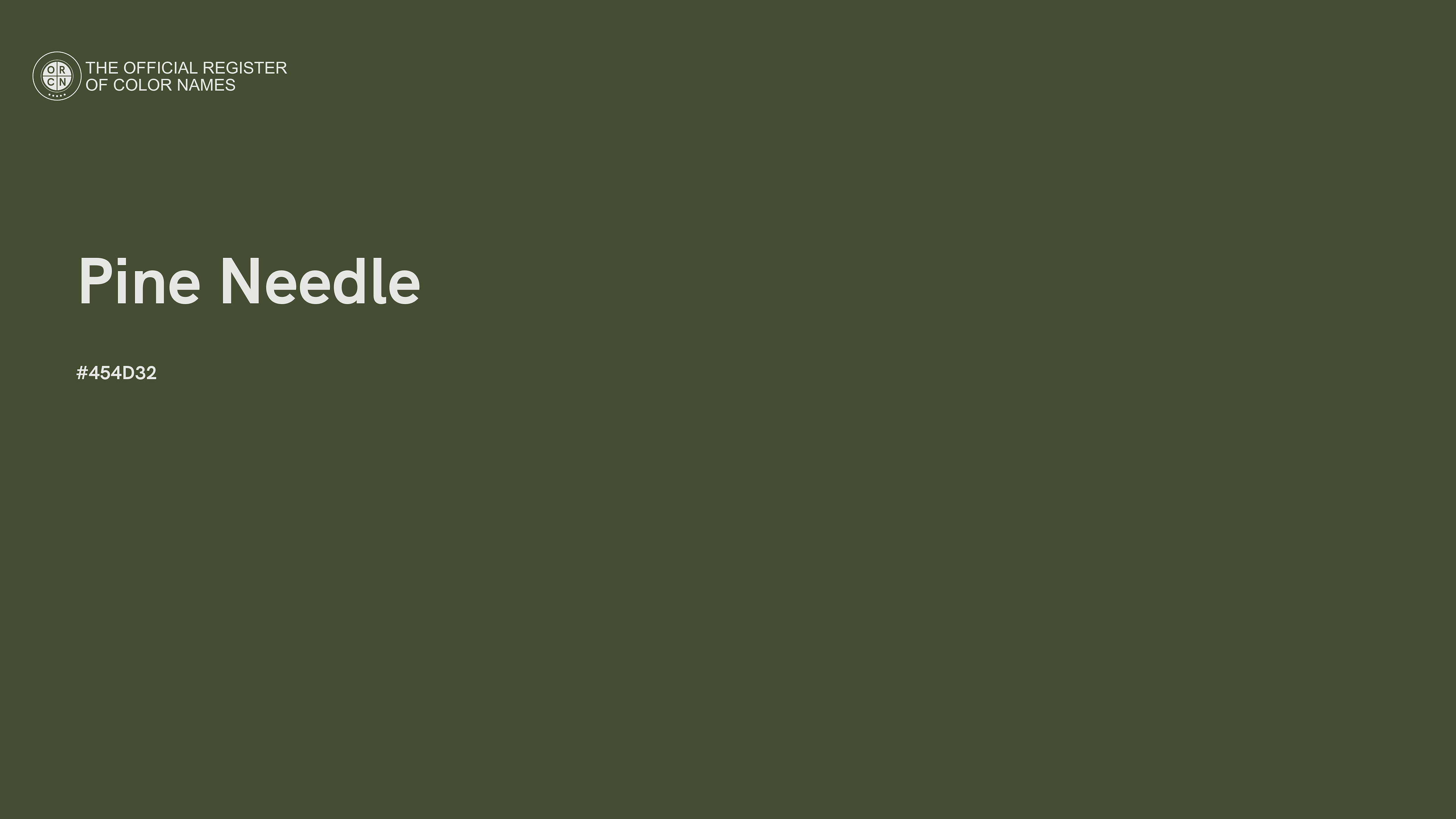 The digital color HEX #454D32, known as "Pine Needle", belongs to the Chartreuse Color Family featuring Low Saturation (Saturation Family) and Neutral (Brightness Family).