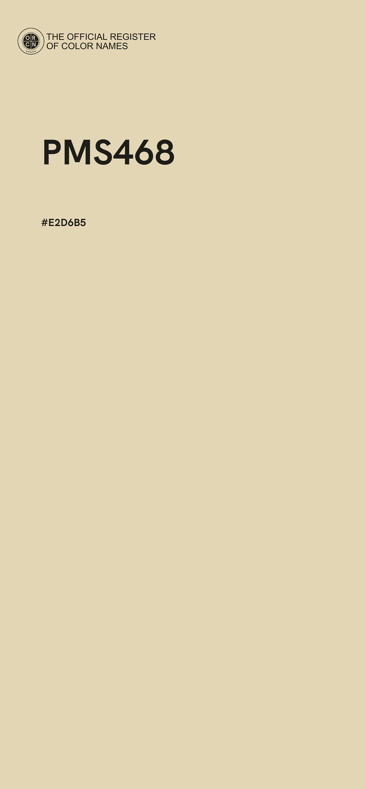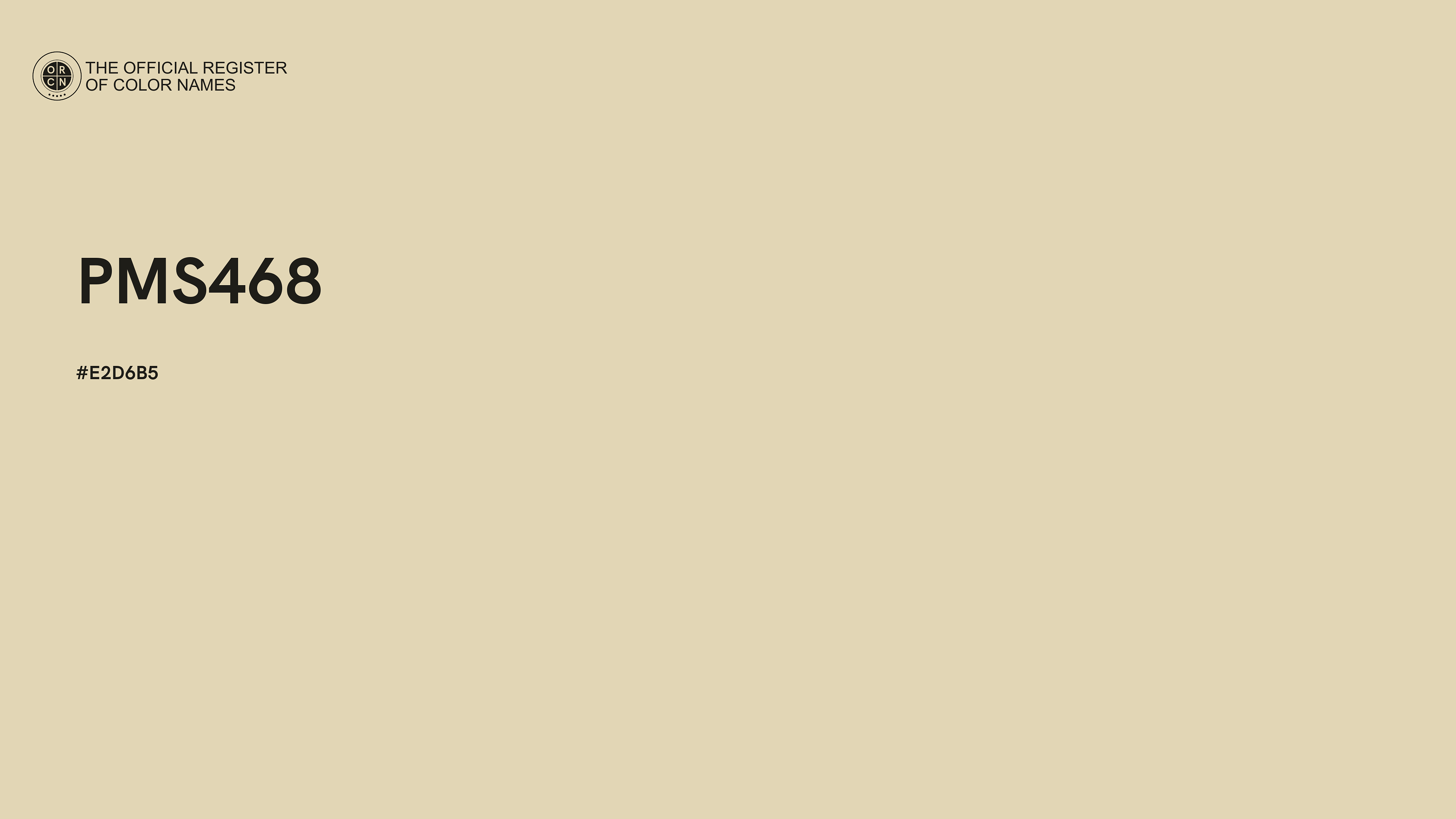 The digital color HEX #E2D6B5, known as "PMS468", belongs to the Orange Color Family featuring Moderate Saturation (Saturation Family) and Very Light (Brightness Family).