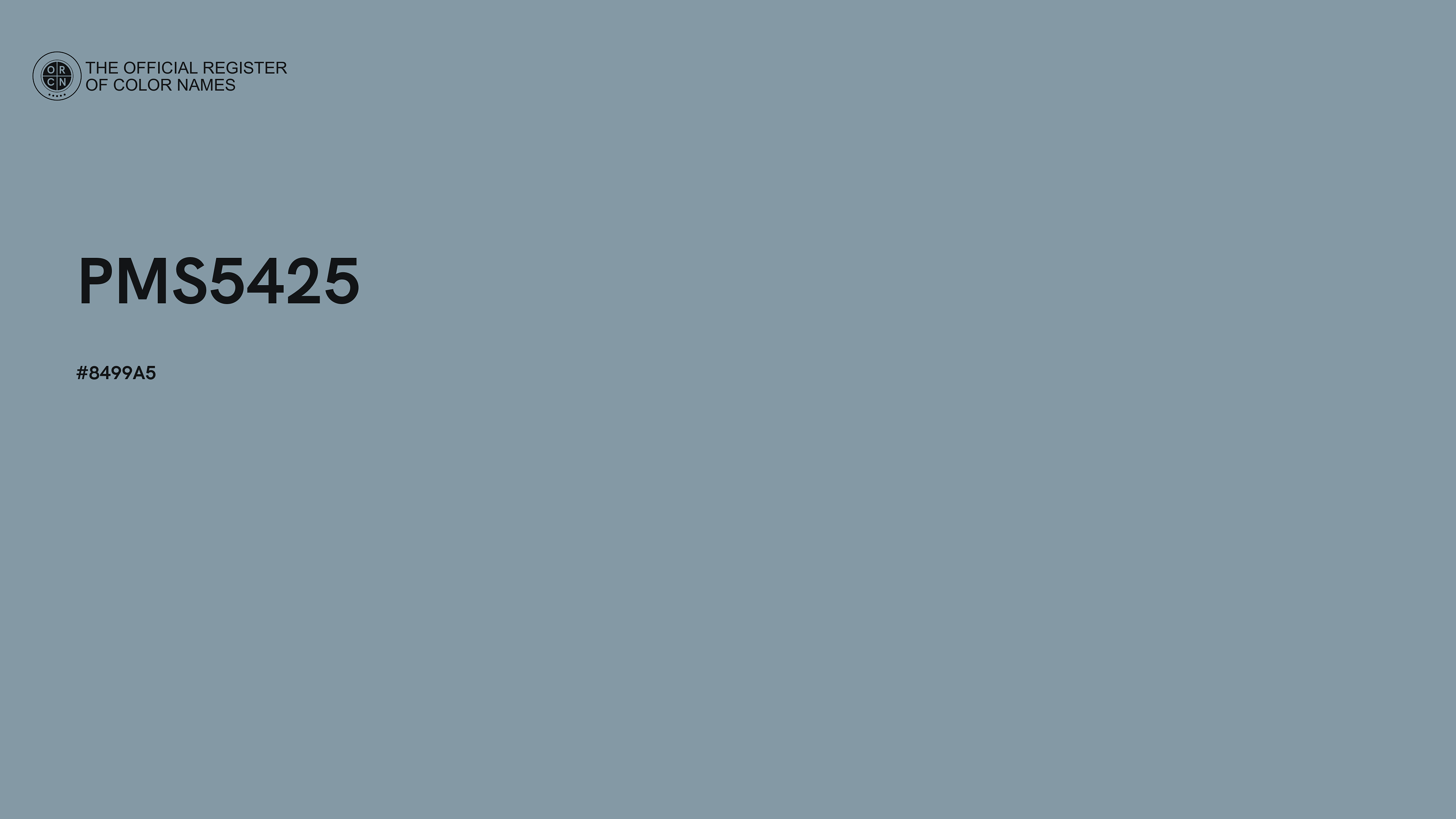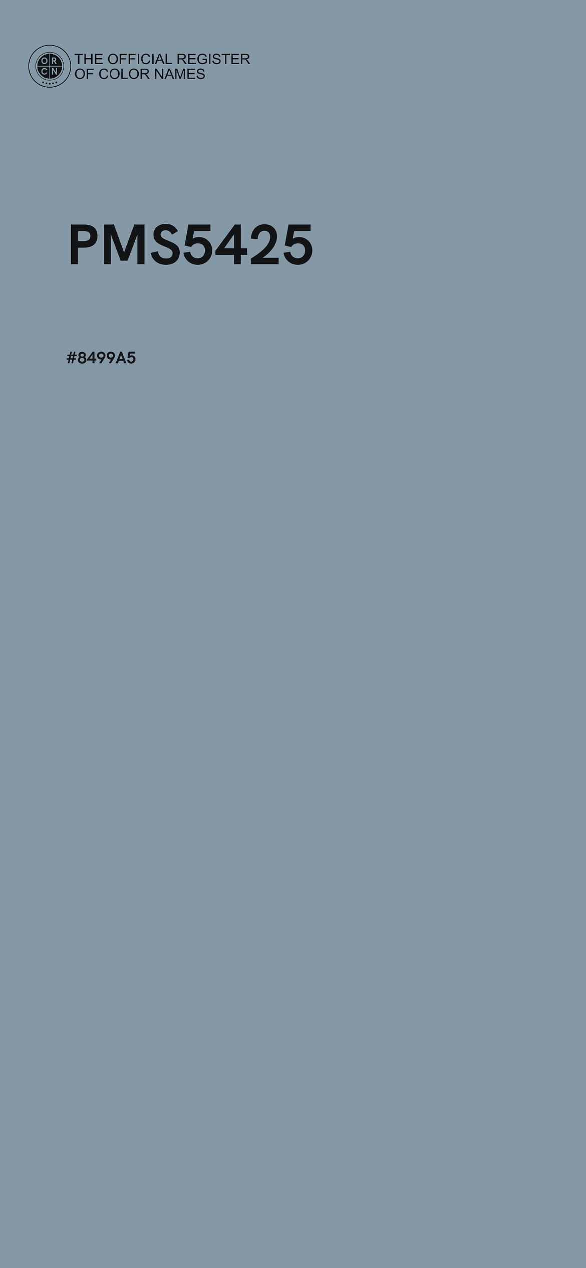 The digital color HEX #8499A5, known as "PMS5425", belongs to the Azure Color Family featuring Low Saturation (Saturation Family) and Light (Brightness Family).