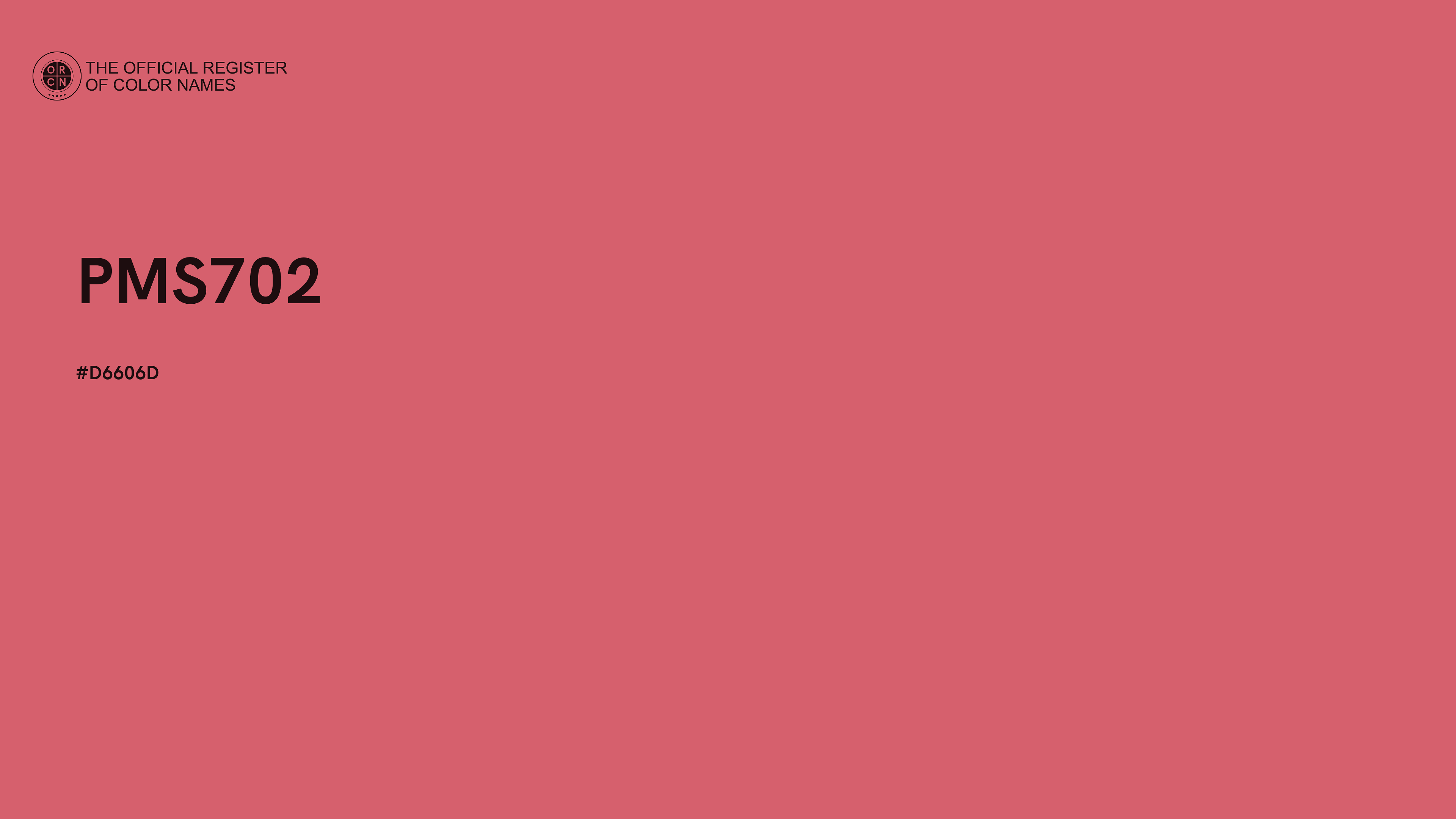 The digital color HEX #D6606D, known as "PMS702", belongs to the Red Color Family featuring Moderate Saturation (Saturation Family) and Very Light (Brightness Family).