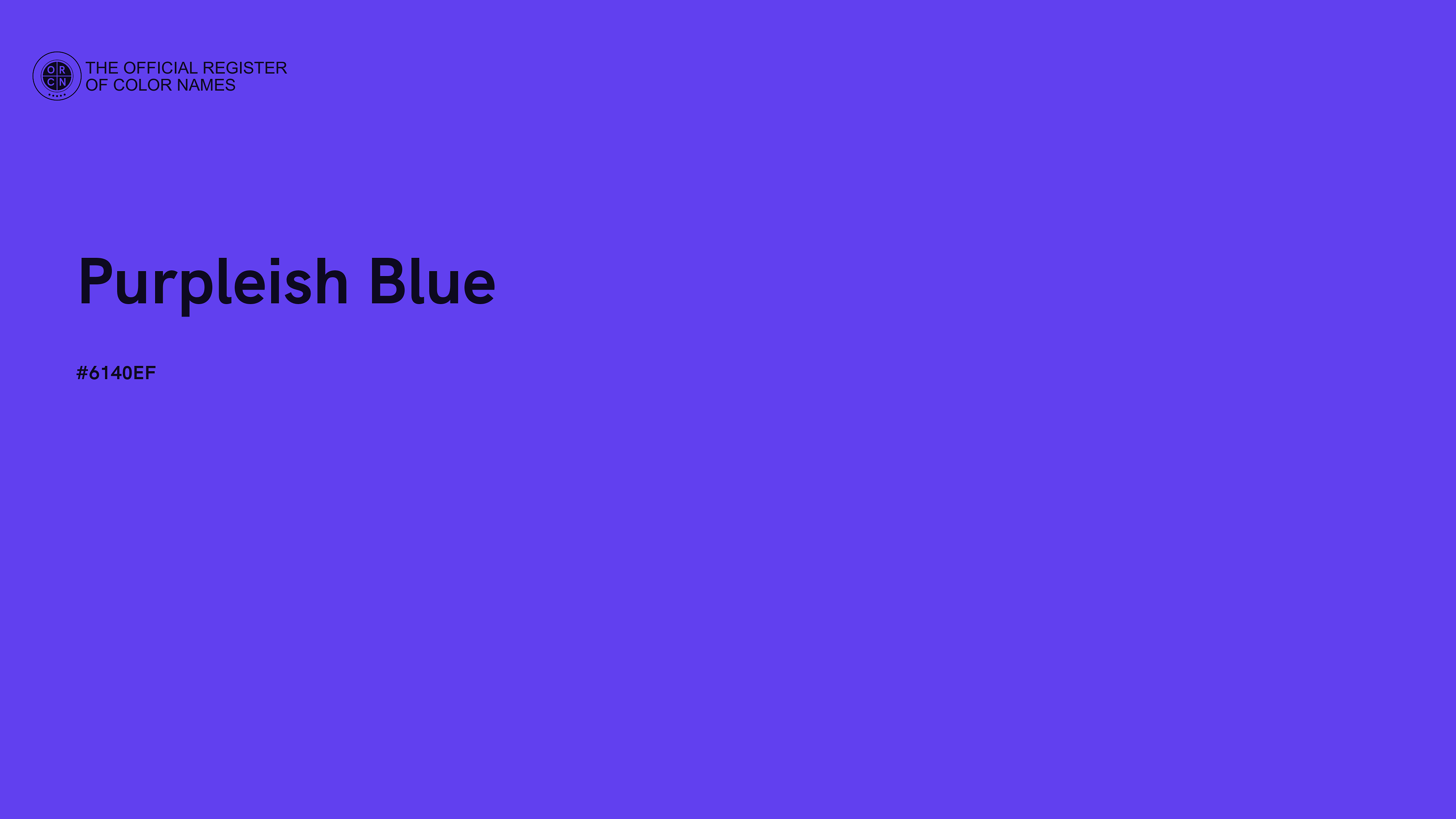 The digital color HEX #6140EF, known as "Purpleish Blue", belongs to the Blue Color Family featuring Full Saturation (Saturation Family) and Light (Brightness Family).