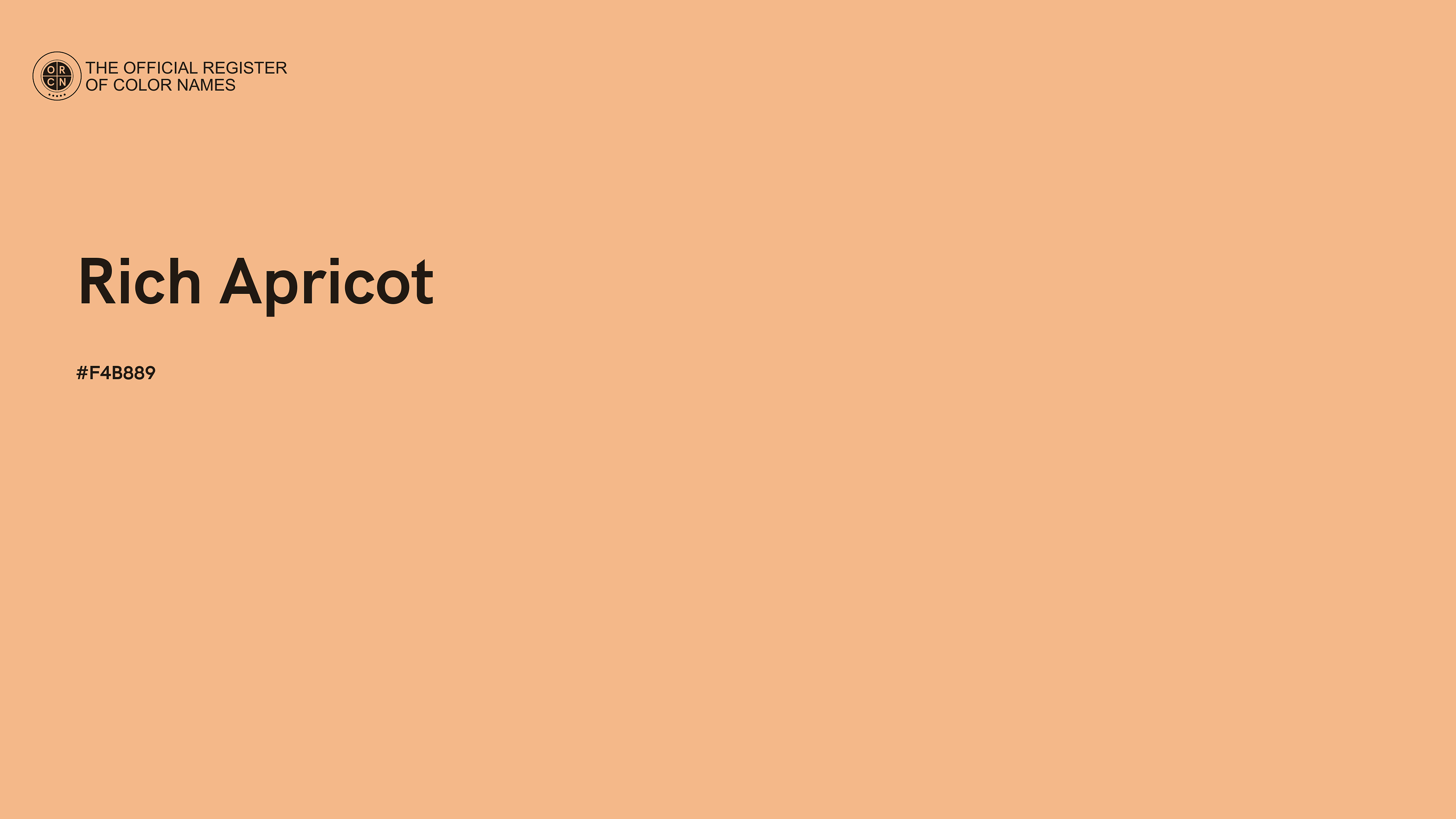 The digital color HEX #F4B889, known as "Rich Apricot", belongs to the Orange Color Family featuring High Saturation (Saturation Family) and Very Light (Brightness Family).