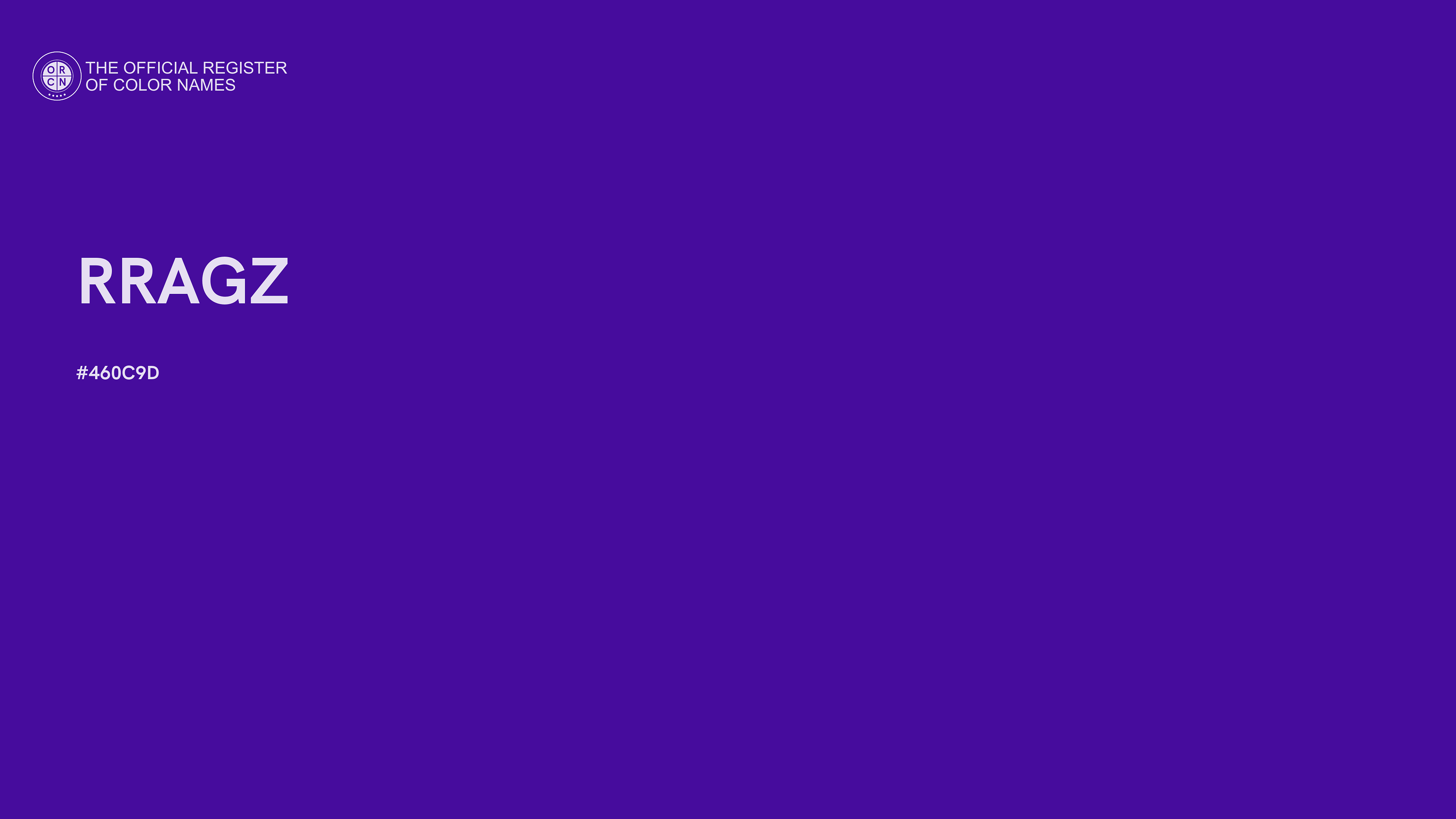 The digital color HEX #460C9D, known as "RRAGZ", belongs to the Violet Color Family featuring Full Saturation (Saturation Family) and Neutral (Brightness Family).