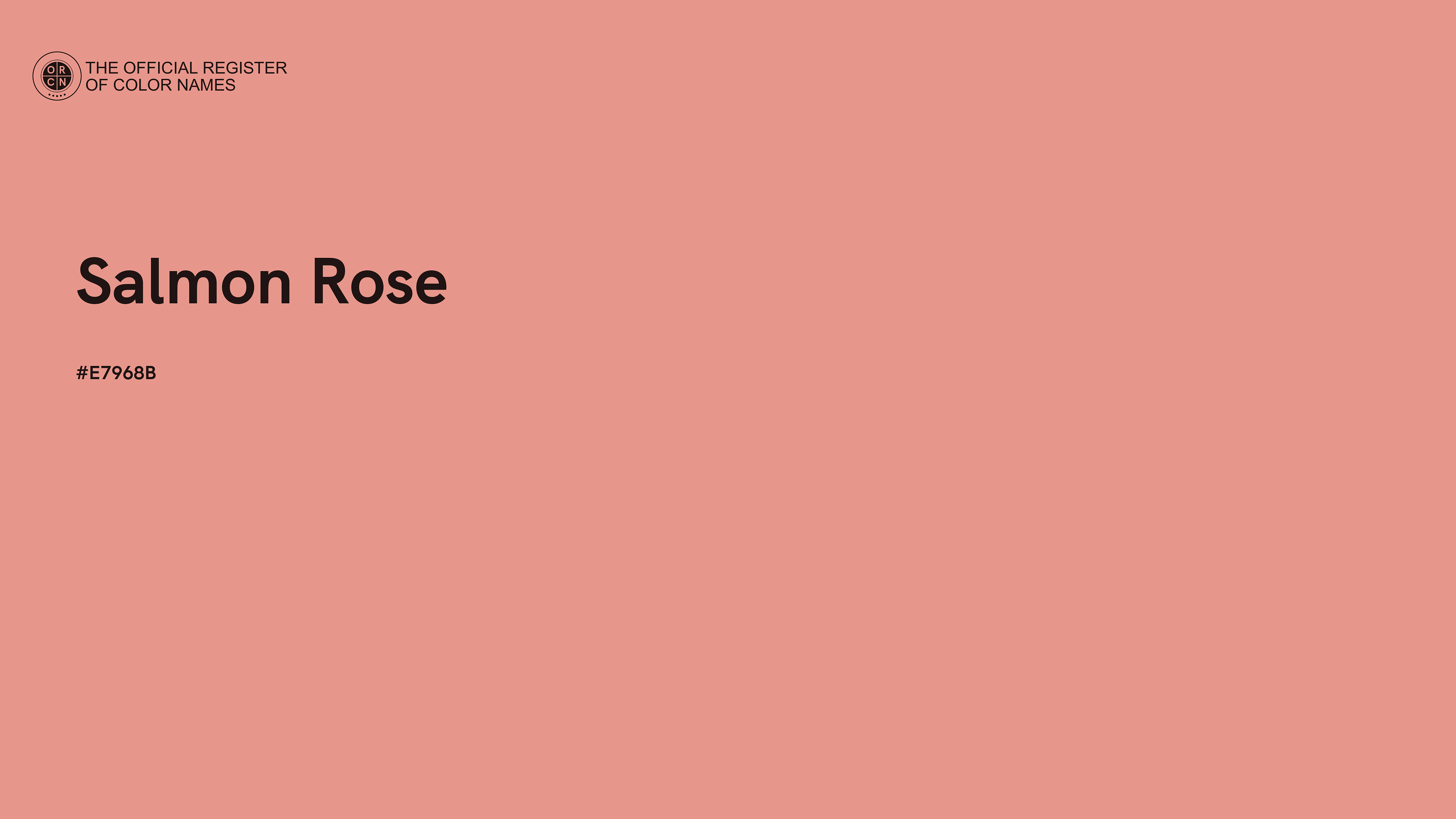The digital color HEX #E7968B, known as "Salmon Rose", belongs to the Red Color Family featuring High Saturation (Saturation Family) and Very Light (Brightness Family).