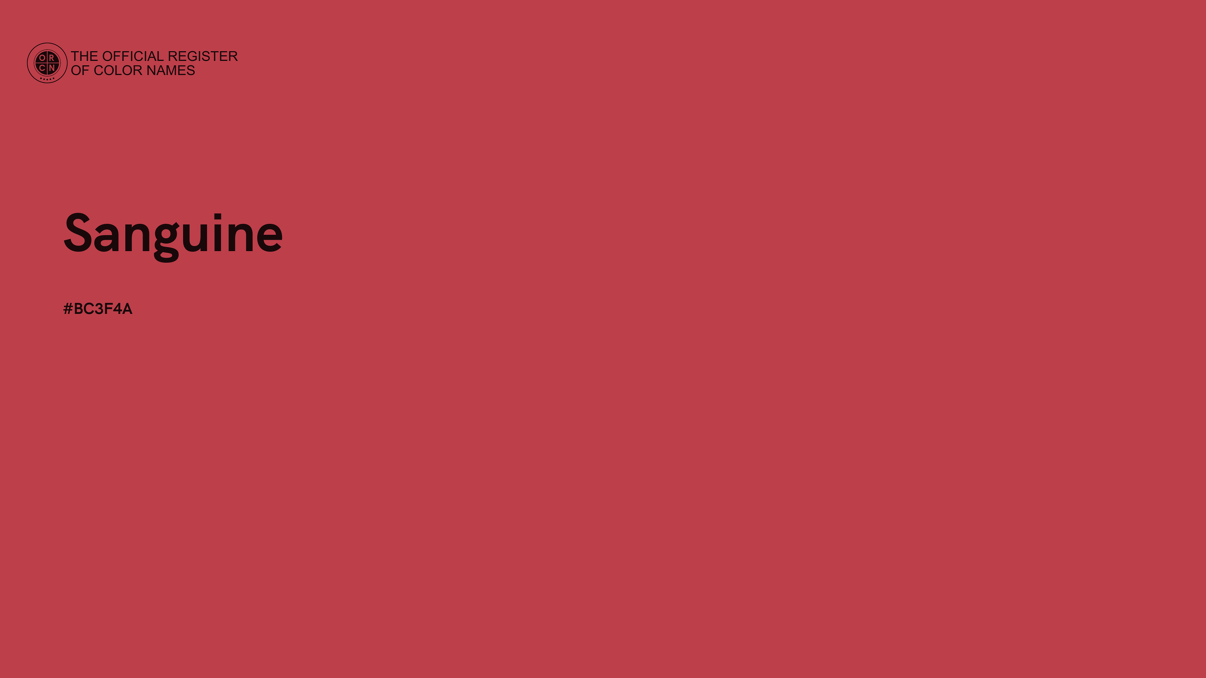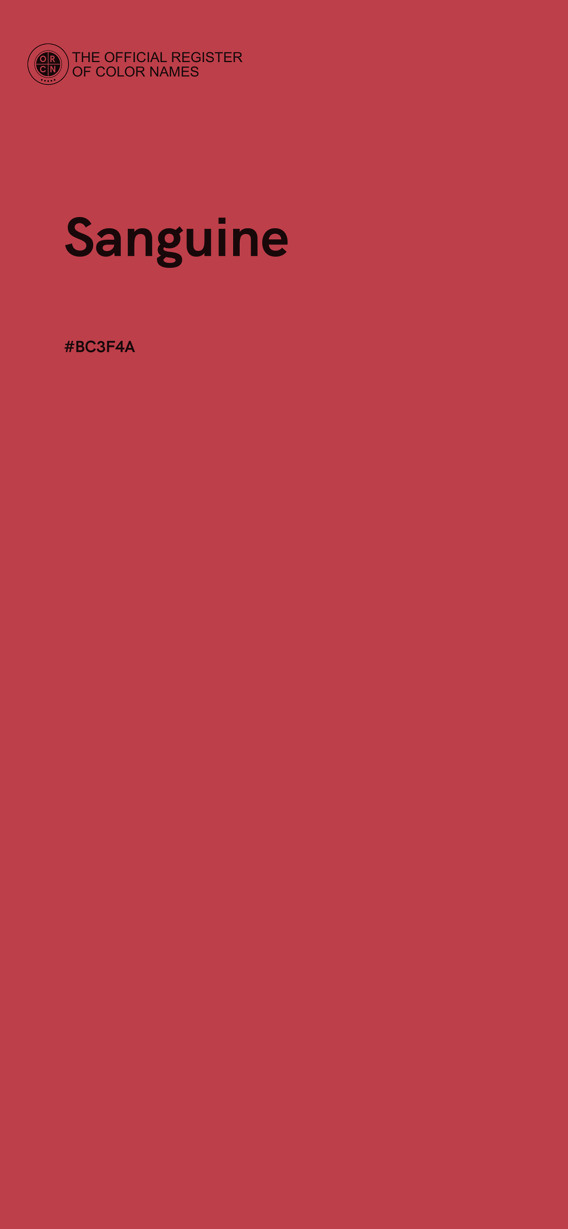 The digital color HEX #BC3F4A, known as "Sanguine", belongs to the Red Color Family featuring Moderate Saturation (Saturation Family) and Light (Brightness Family).