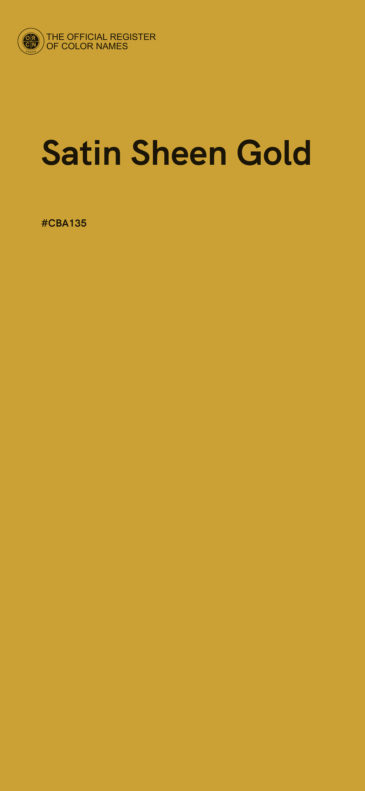 The digital color HEX #CBA135, known as "Satin Sheen Gold", belongs to the Orange Color Family featuring Moderate Saturation (Saturation Family) and Light (Brightness Family).
