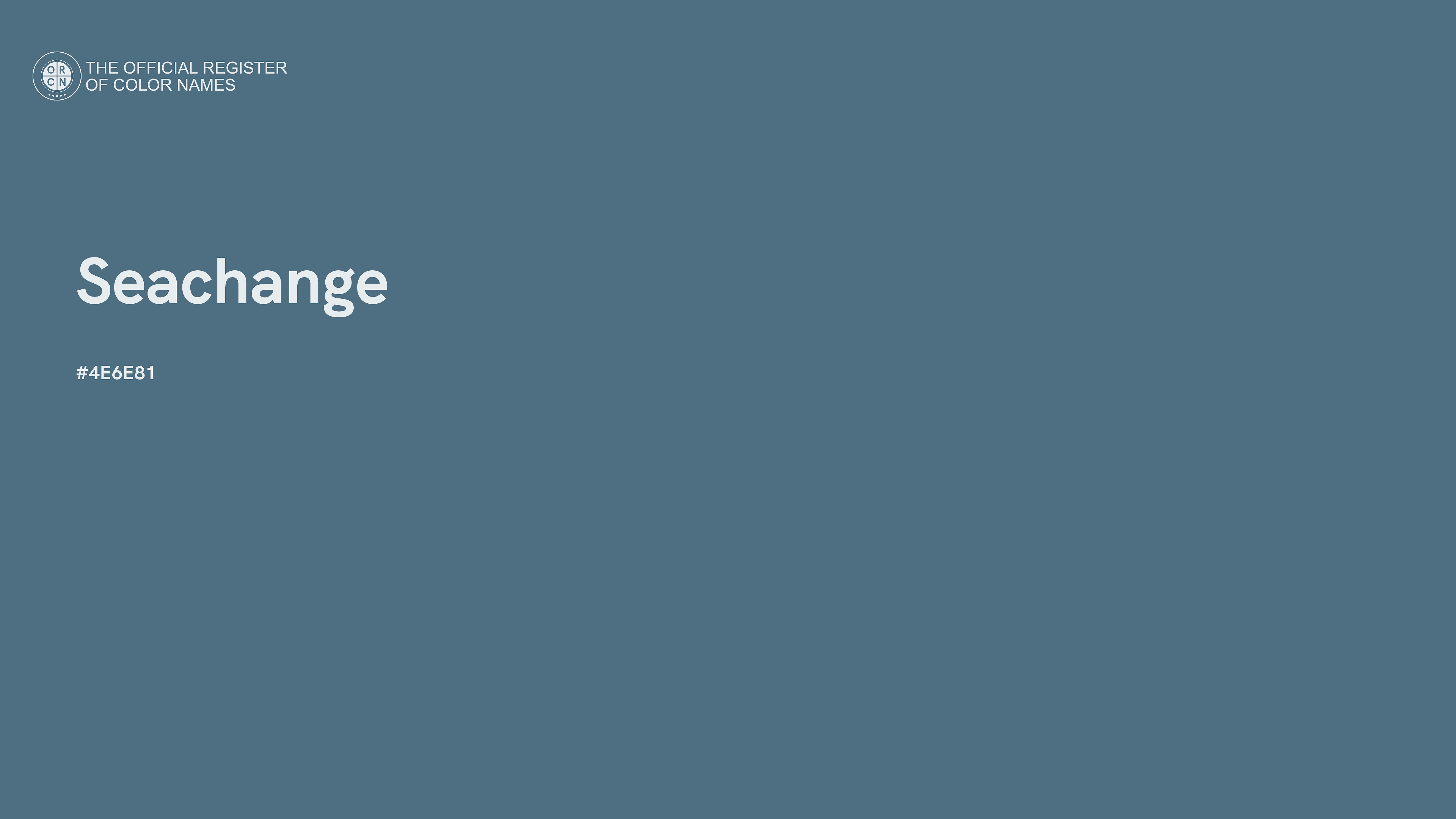 The digital color HEX #4E6E81, known as "Seachange", belongs to the Azure Color Family featuring Mild Saturation (Saturation Family) and Light (Brightness Family).