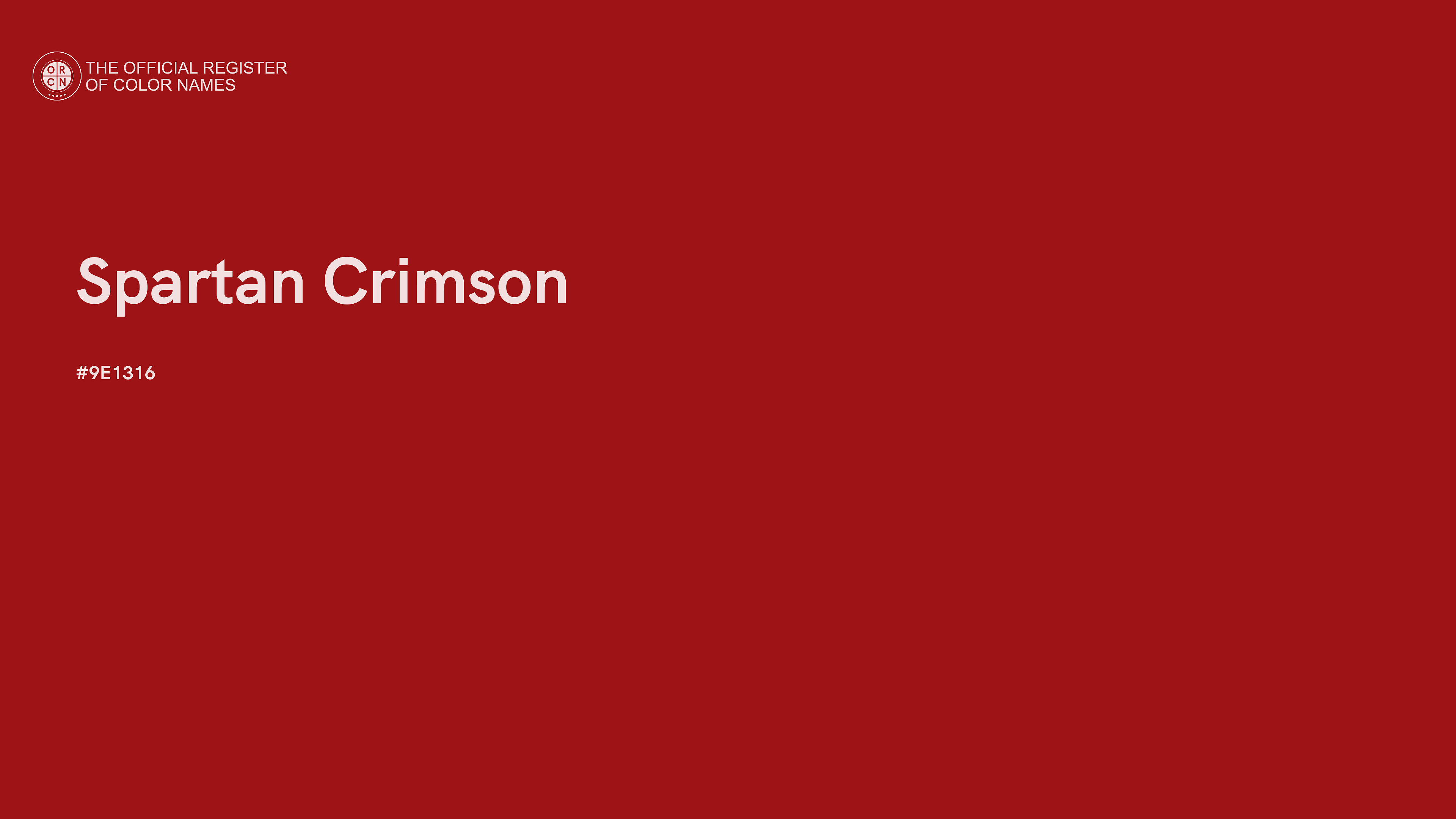 The digital color HEX #9E1316, known as "Spartan Crimson", belongs to the Red Color Family featuring High Saturation (Saturation Family) and Neutral (Brightness Family).